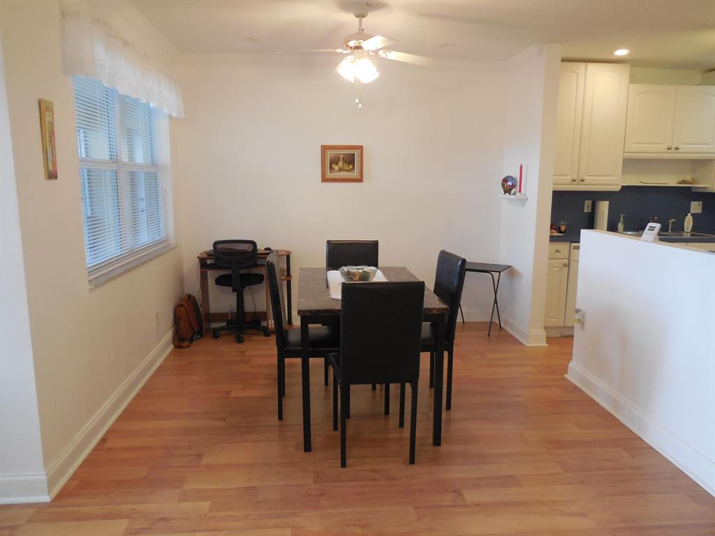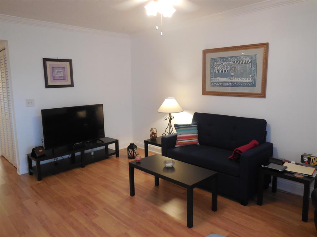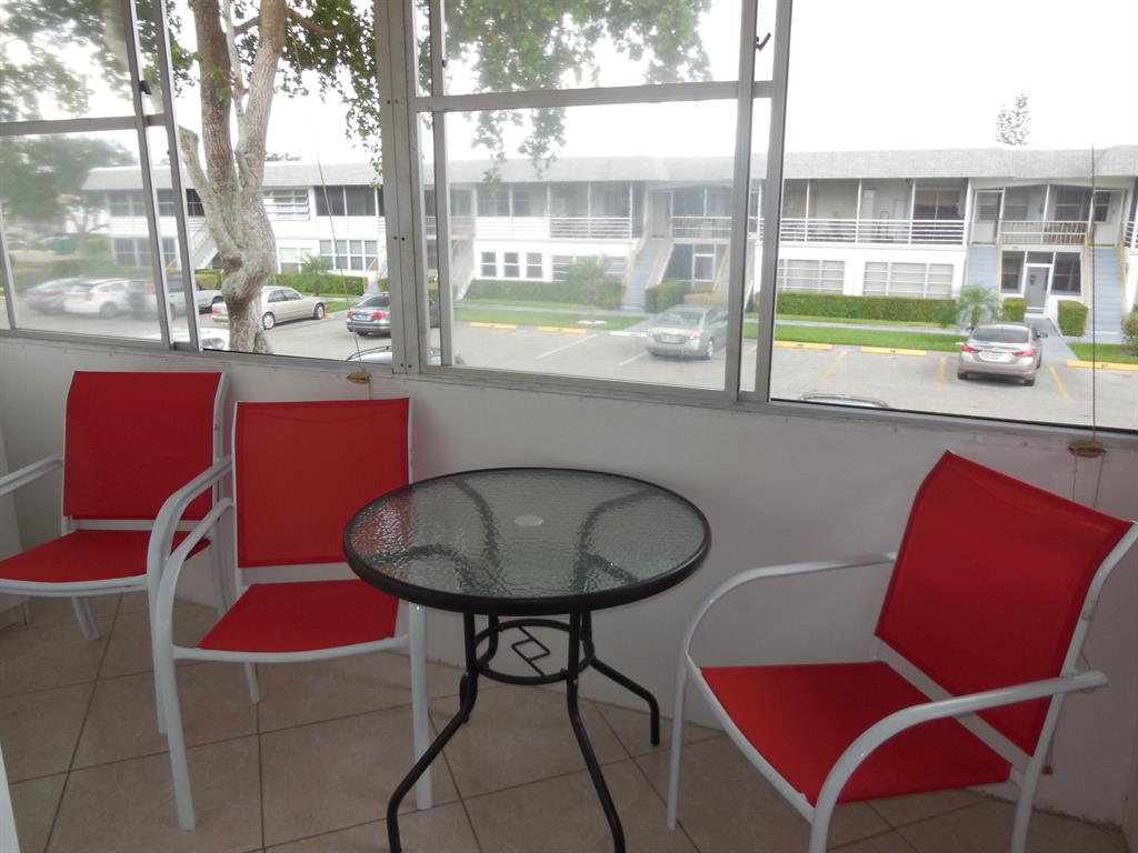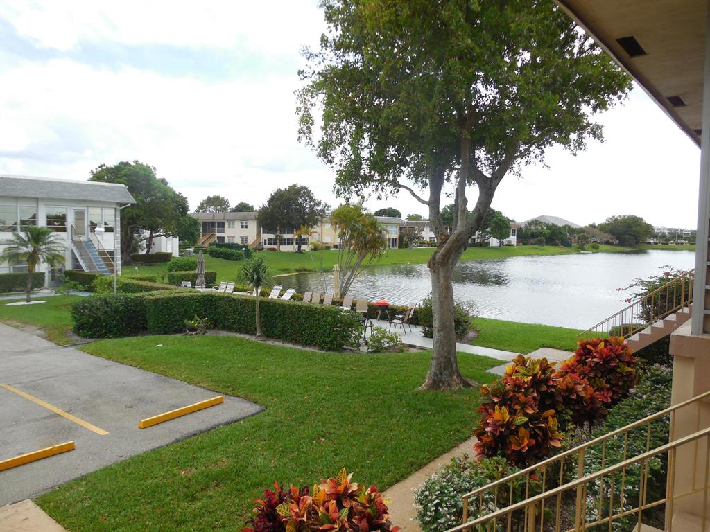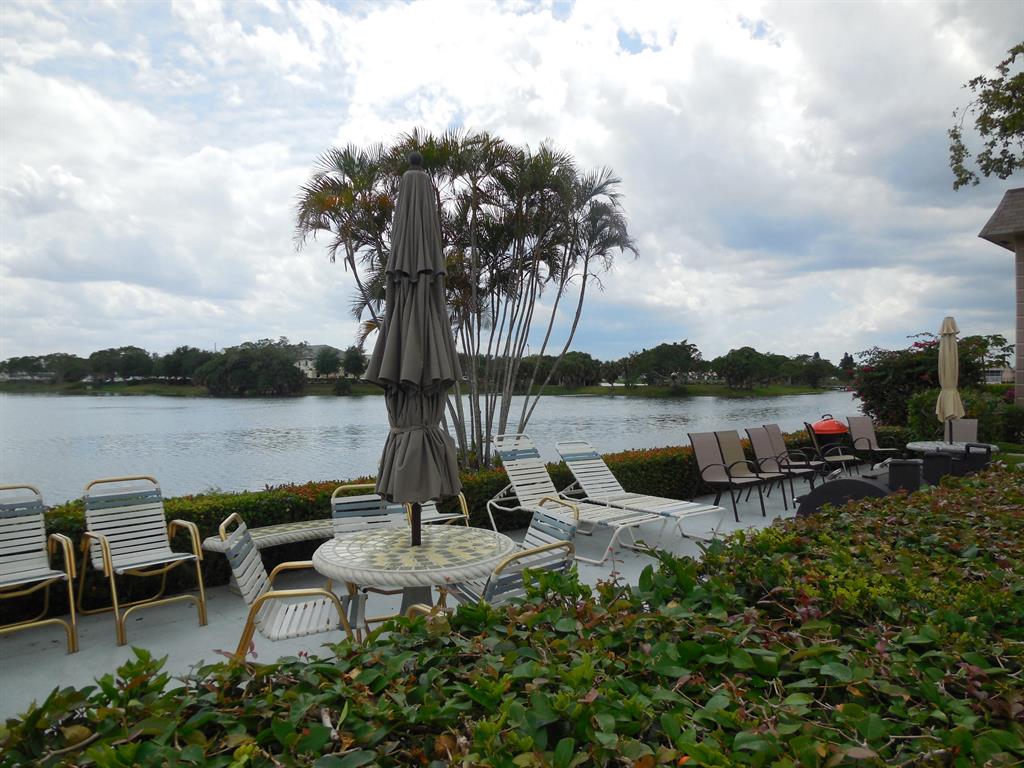 Fabulously furnished oversized 1BR/1.5BTH second floor condo with gorgeous water view in gated adult community. This property was gutted to the studs and completely renovated in 2006. Features include; open concept. laminate flooring, crown molding, 5-inch baseboards, 6-panel interior doors and impact windows! Plenty of storage space. A spacious fully enclosed screened and windowed patio with a beautiful lake view provides a serene place to relax. Room to add association approved washer/dryer. Monthly maintenance fee includes high speed internet and water. Turn key condition.