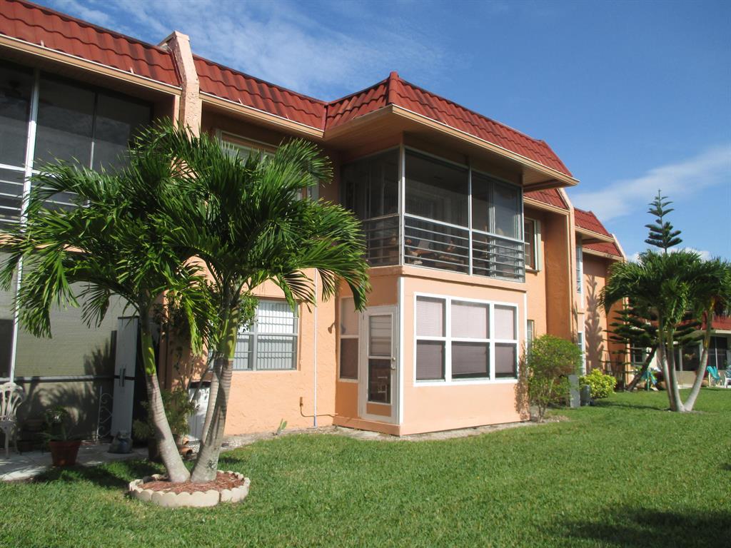 Updated first floor full 2/2, new kitchen, new appliances, tile floors (new carpet in BR's). Move in condition. $500 credit to buyer for cost of Washer/dryer hookup. Some furniture available for sale. Enclosed patio w/newer windows. Great Location, walk to the Phase A Clubhouse next door. Courtesy Bus two days a week to grocery, shops and malls.24/7 guard gated community with full time social director scheduling lots of social activities.