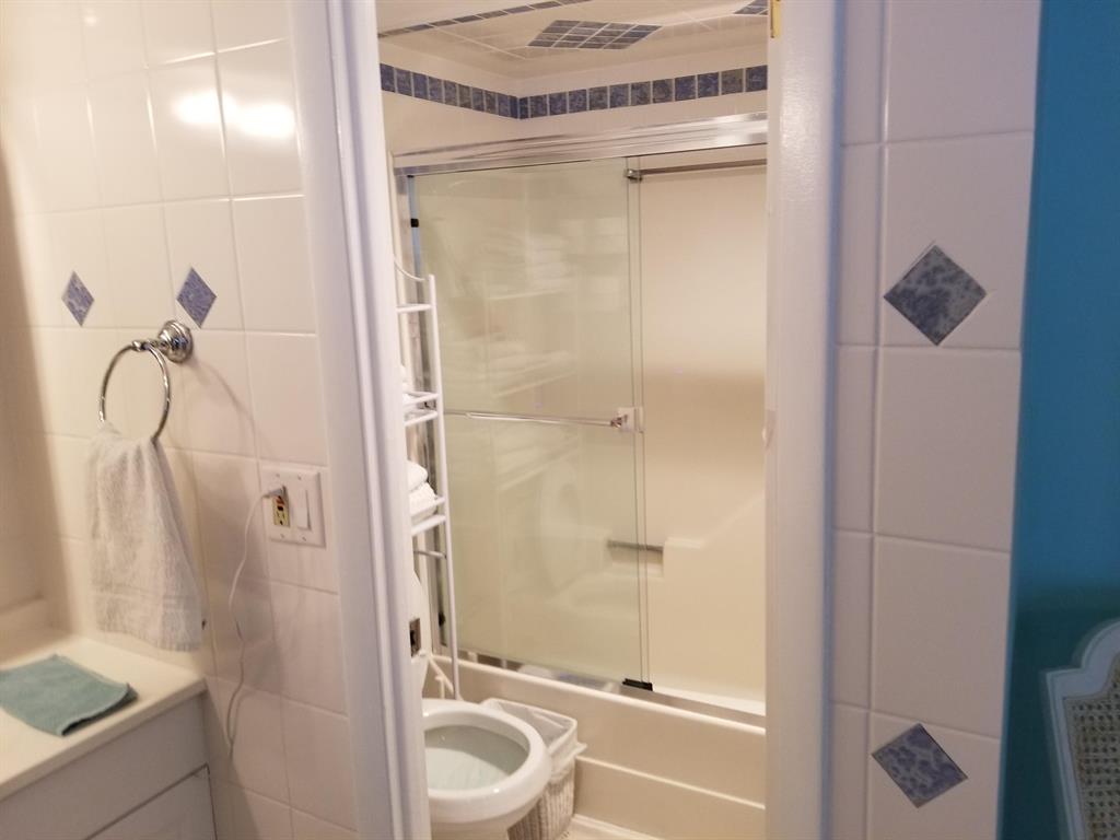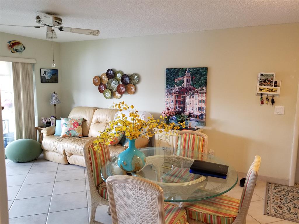 Beautifully enclosed Florida Room overlooking Lake Evelyn. 2nd Story 2 / 2 Condo Convertible. Ceramic tile throughout, updated guest bathroom, lots of closet space! There is a washer and dryer in unit. The water heater and A/C unit are 3 years old. Excellent Location, 15 mins to WPB Airport and lots of excellent shopping. Amenities include a large Club House with Olympic size heated Pool, Jacuzzi, Tennis Courts, Shuffleboard and an onsite Cafe! BBQ's available and lots of space for picnics and a large social room for parties. Golden Lakes is a 24 hour Guard Gated Community. Condo Fees include Cable and Water. Weekly Transportation provided to local shops! Golden Lakes is a fun and action packed Community!