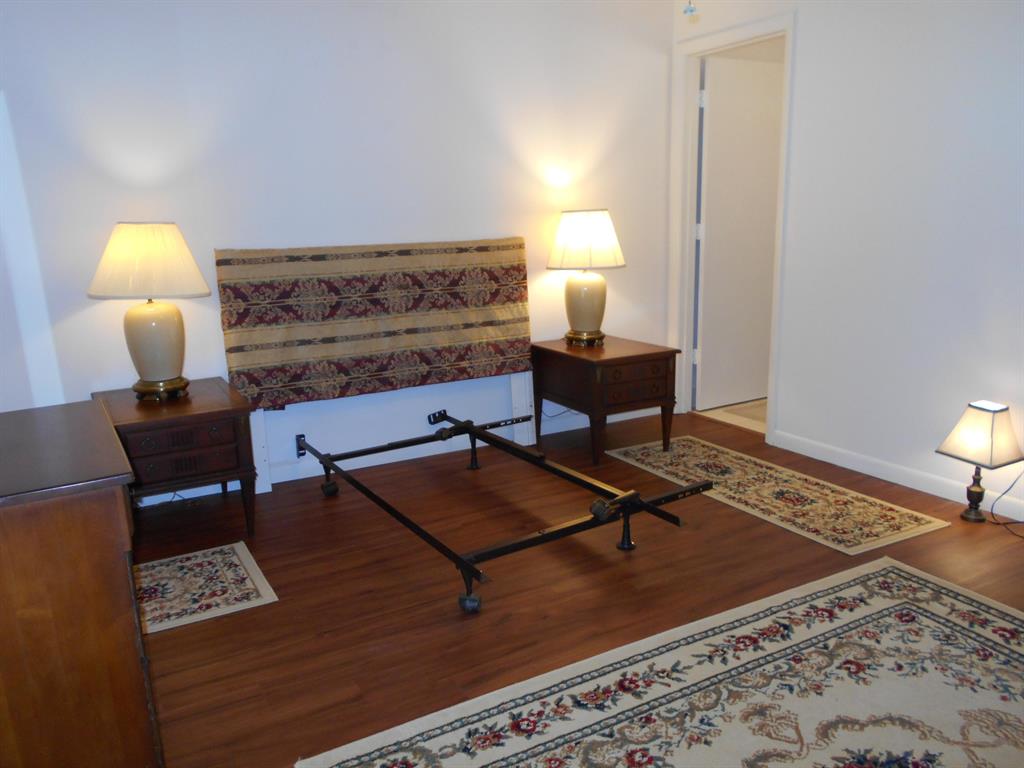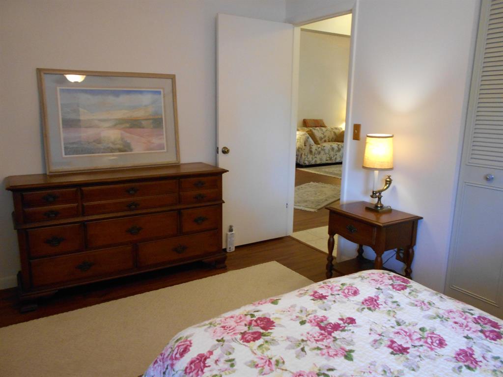Much sought after VILLA; 1 fl., patio to the no. side and 18x10 porch on the back facing what looks like a preserve, deep w/ green area w/trees . Fees incl. upcoming re roof, and new fencing.impact windows @ back patio sliders, gated entry system. Hallway separates the 2 Bedrooms. Close to shopping, PBIA air port, I-95 & Turnpike. Beaches 15-20 min.