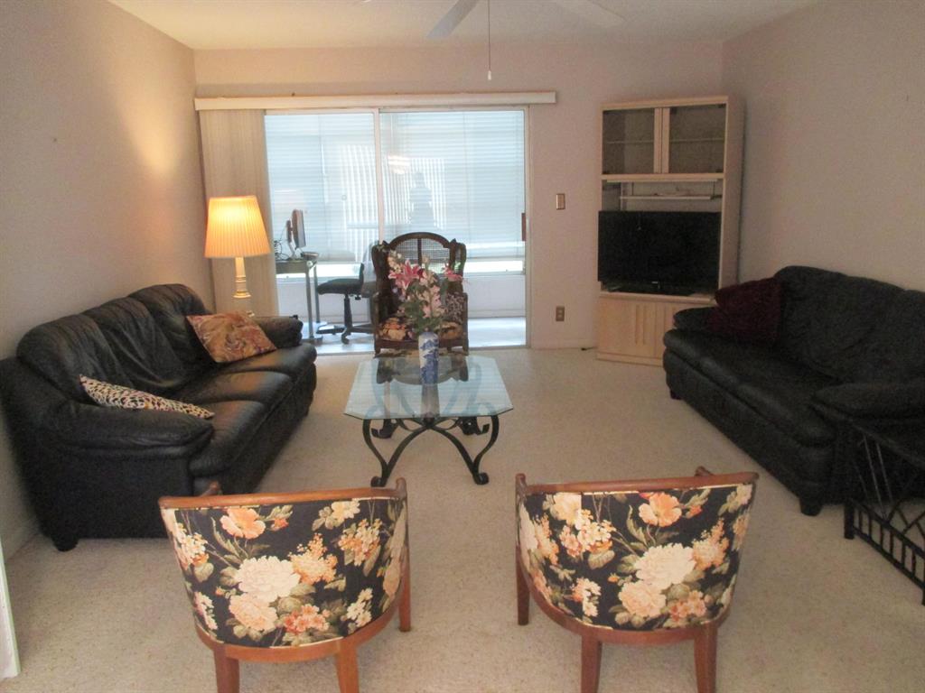 Short walk to clubhouse from this upper 2/2.Garden view from back enclosed patio.Offered with or without furniture. Active 55+ guard gated community with extensive courtesy Bus service to Malls, grocery, shops and internal bus to clubhouse. 1,000 seat auditorium, craft clubs, library, sewing room, card room, lots and lots of social activities and state-of-the-art fitness center at the Hastings Clubhouse including a walking resistance pool. Come Discover Century Village