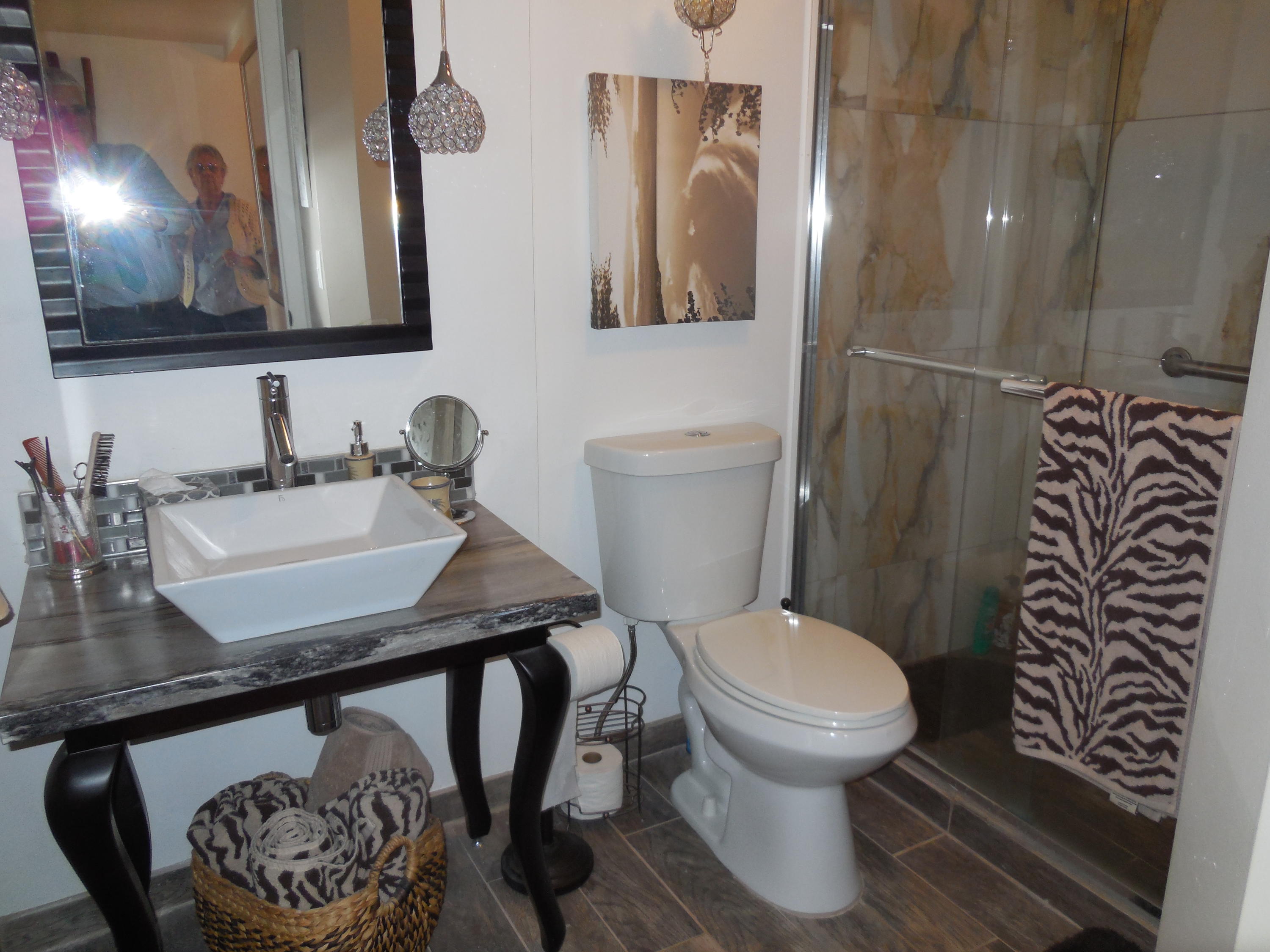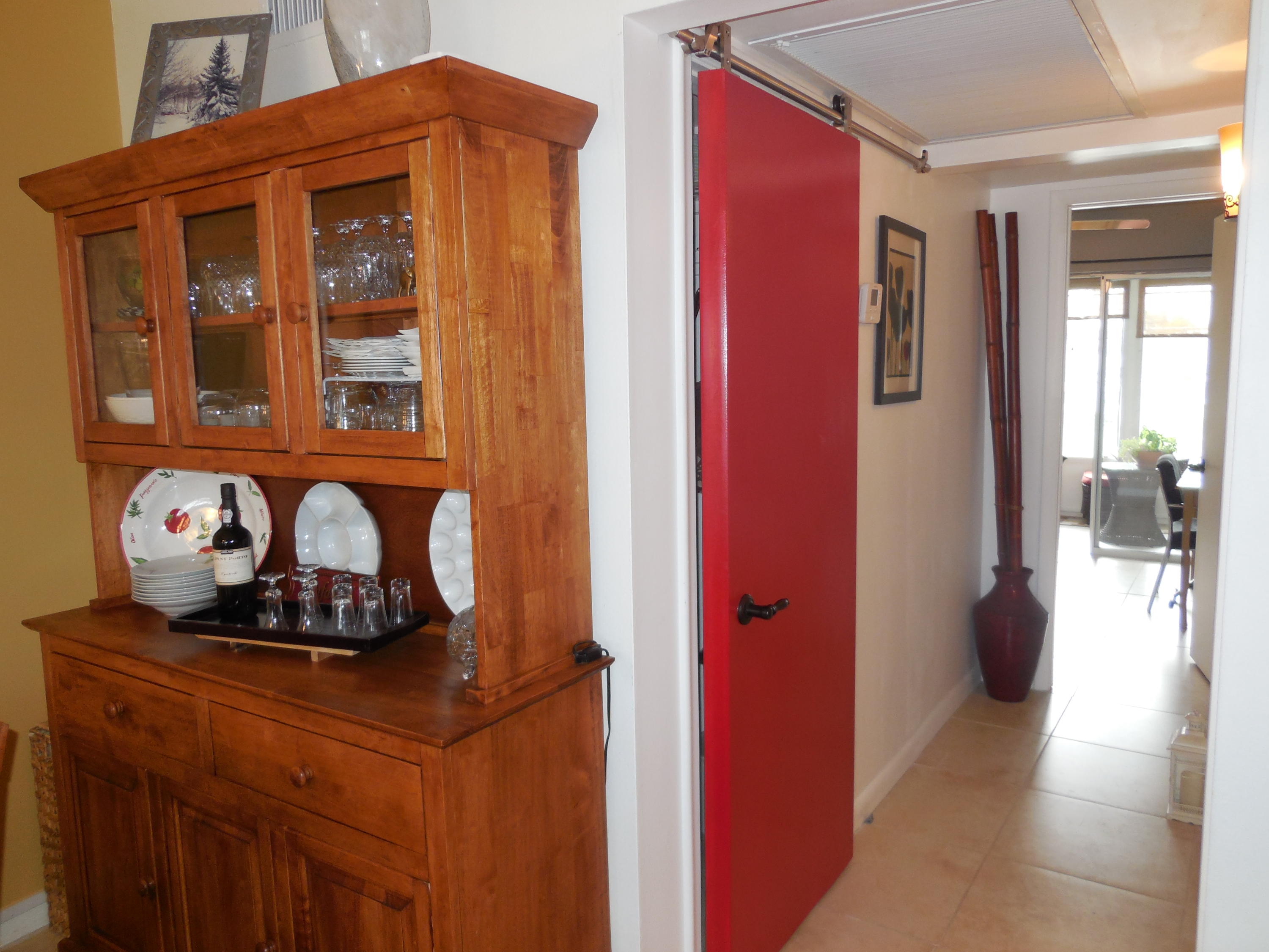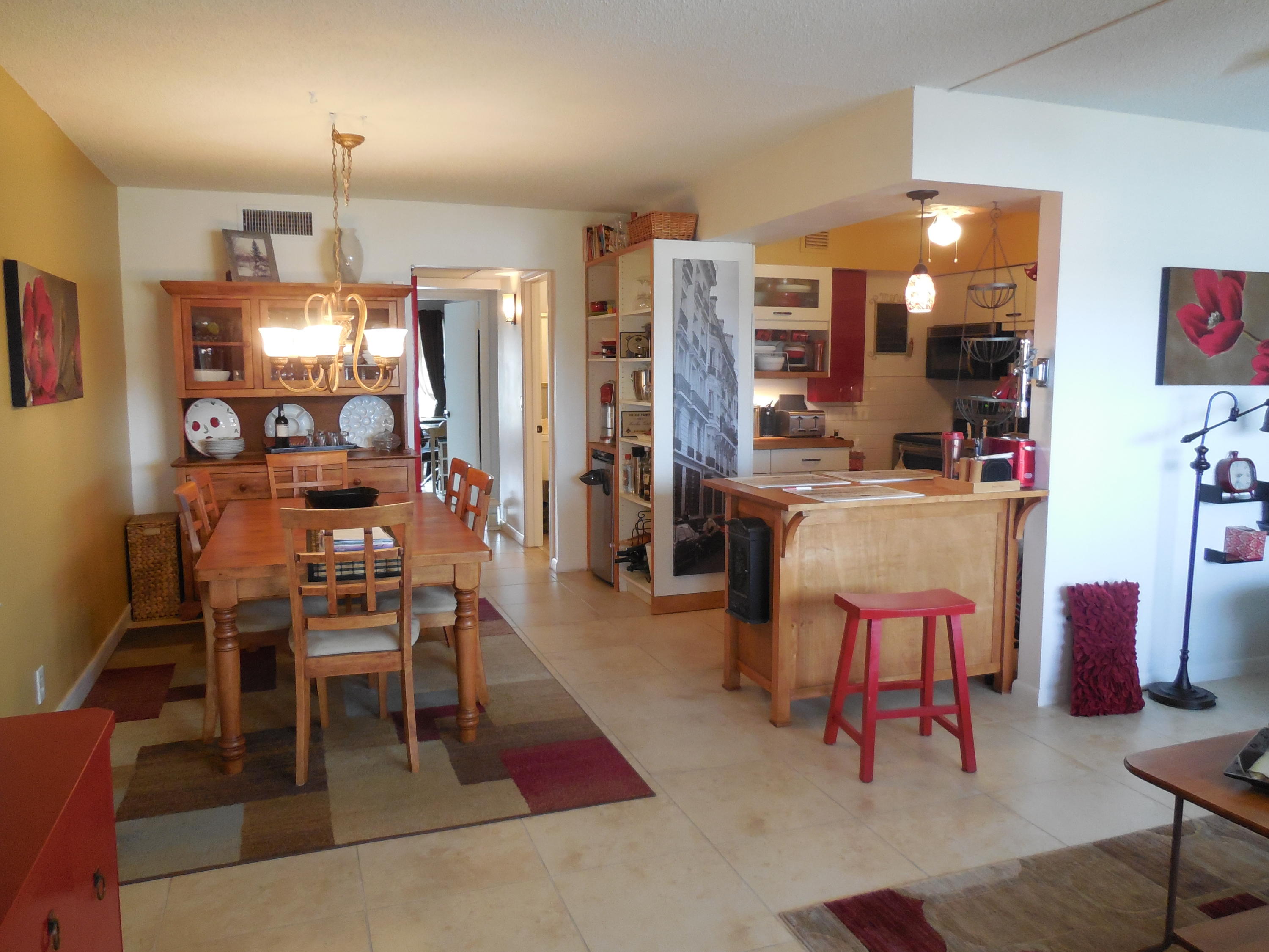 Amazing condo! This one bedroom condo has been converted to a two bedroom! This is your opportunity to own a two bedroom for the price of a one bedroom. This is the most amazing use of space, you must see it. Beautiful bright airy condo. Tastefully decorated. The kitchen has been opened and provides an extra seating area and a spacious pantry. The updates and layout of this kitchen are a must see. Each of the bathrooms have been updated. Bar area has a mini-fridge and a freezer in the pantry. Shaw TV (French) satellite dish installed on patio.