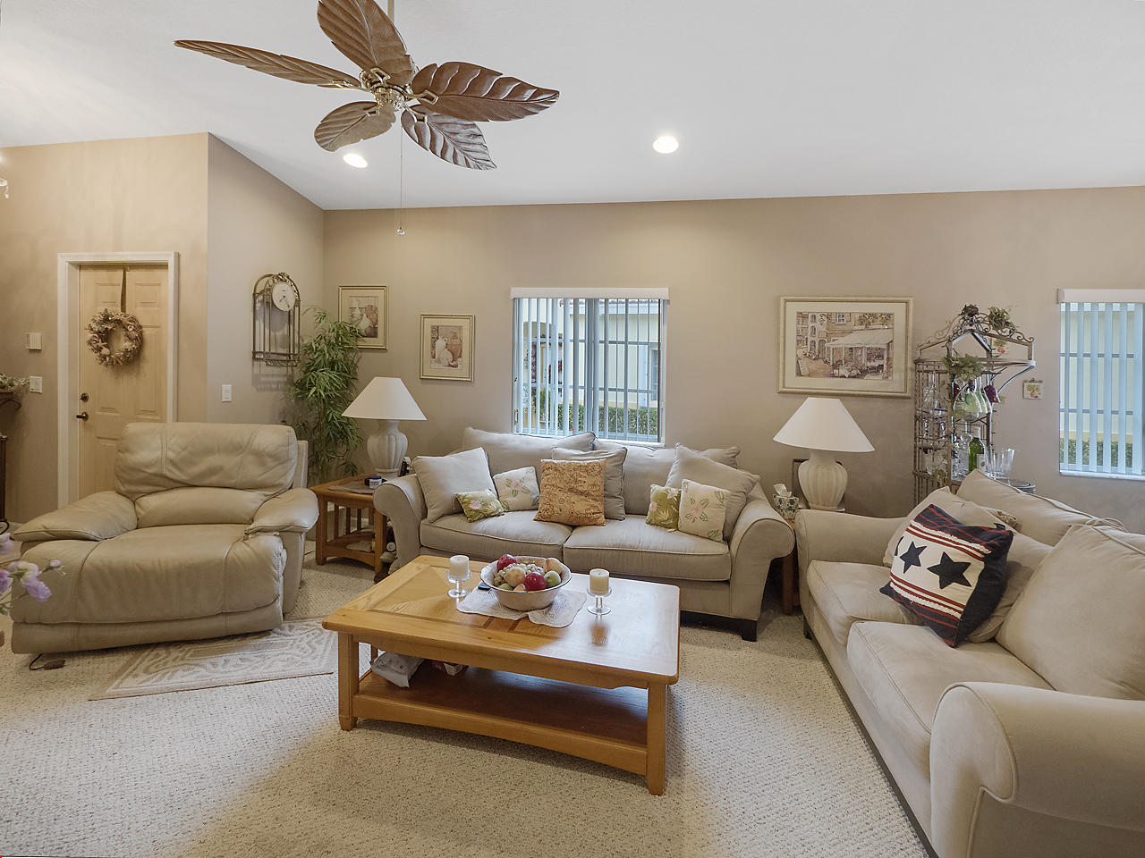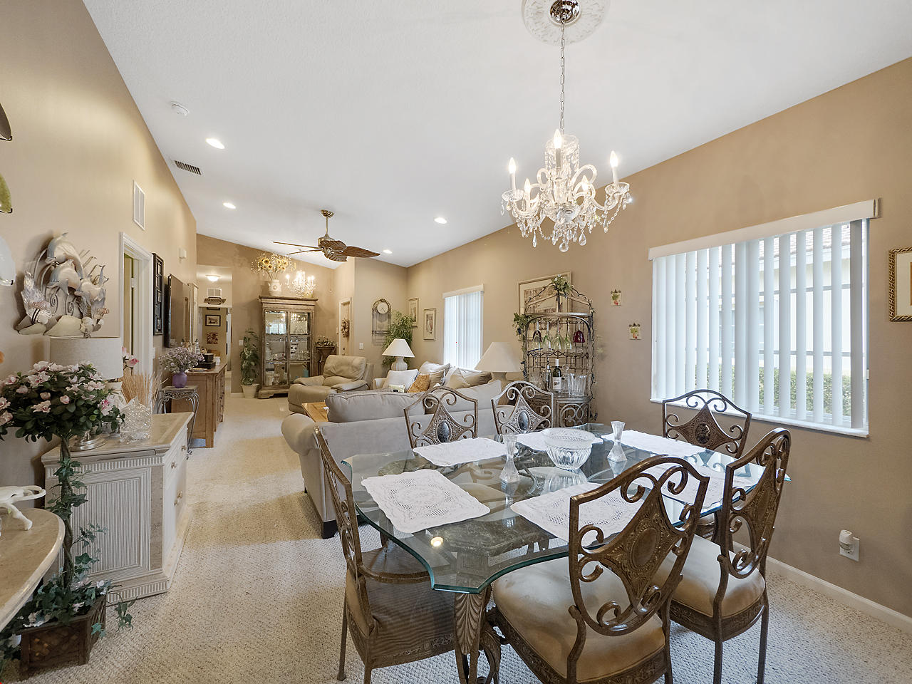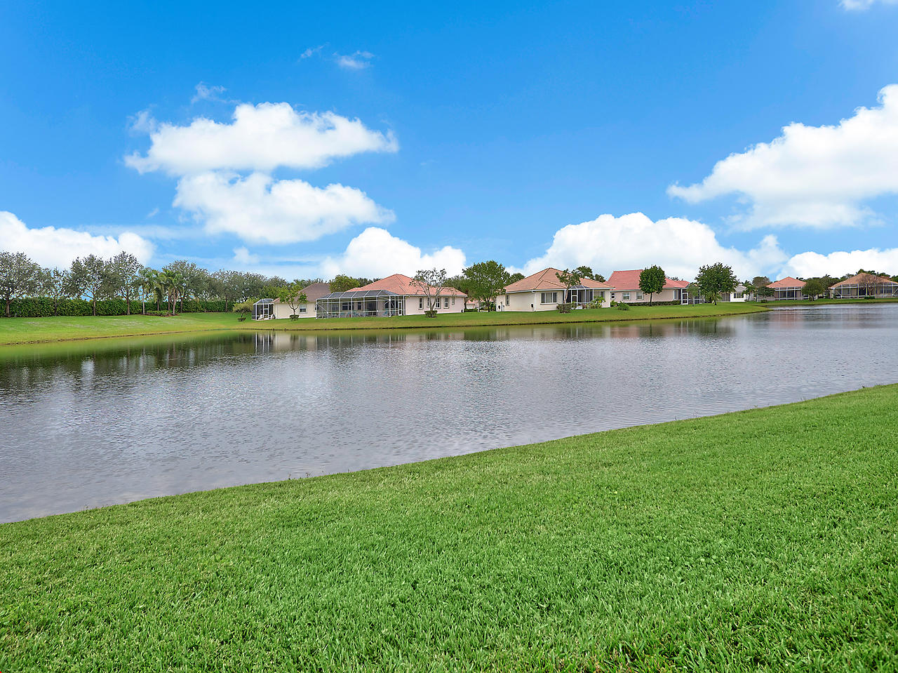 Spacious corner villa with 3 bedrooms and 2 bathrooms. Freshly painted, upgraded light fixtures and ceiling fans. AC is 2 years, washer and dryer are brand new. House has accordion shutters, master has walk in closet. Relax at your screened patio with speakers enjoying the lake view. Driveway for 2 cars. Most of the furniture will stay. Clubhouse offers gym, game room, pool, craft room, aerobic room, movie room, library, ballroom, tennis, bocce and shuffleboard. Active Adult Community. Will not last long,send your offer and enjoy paradise !