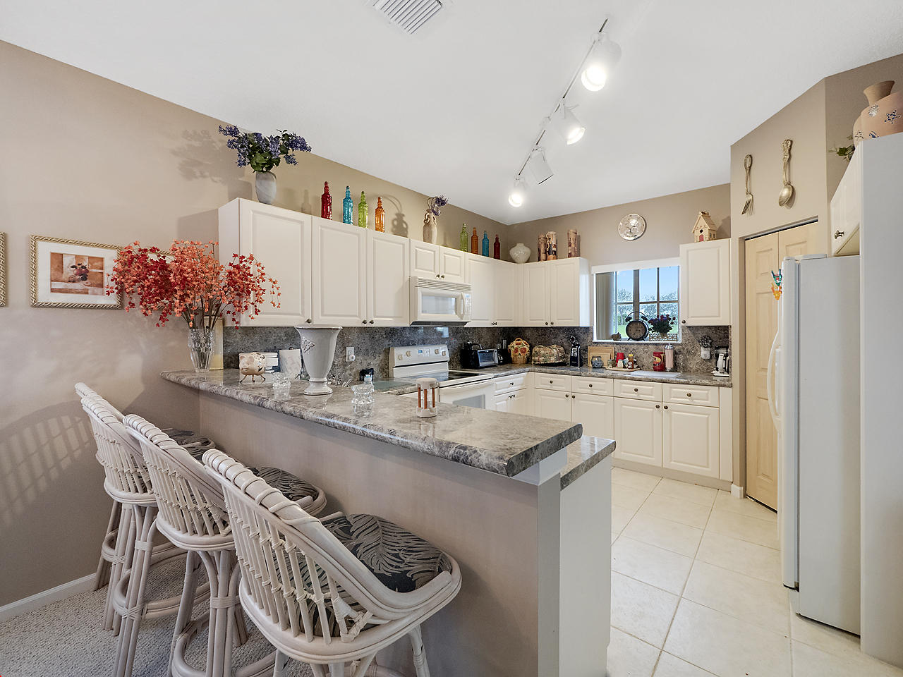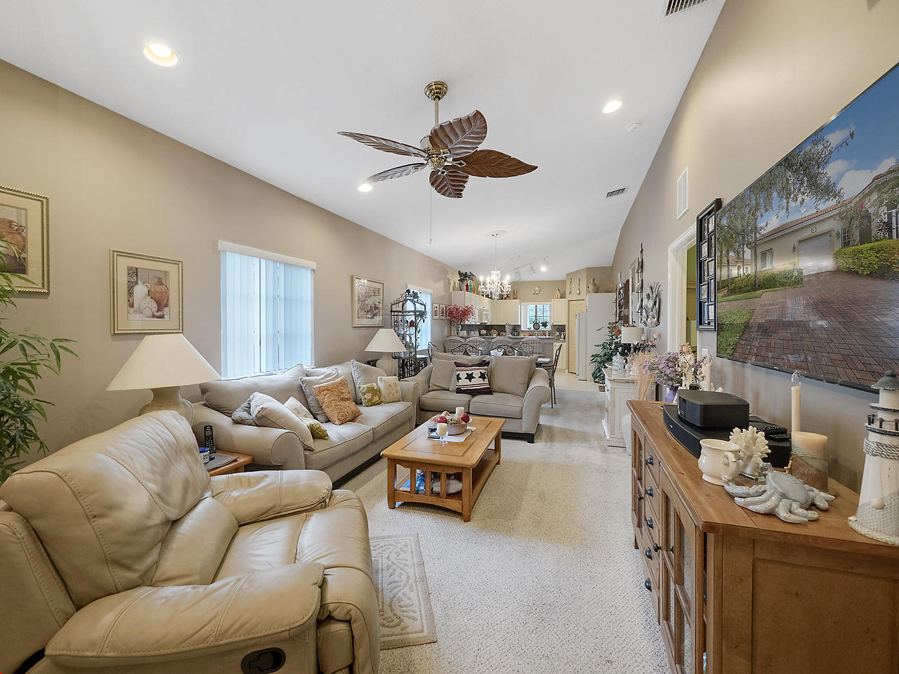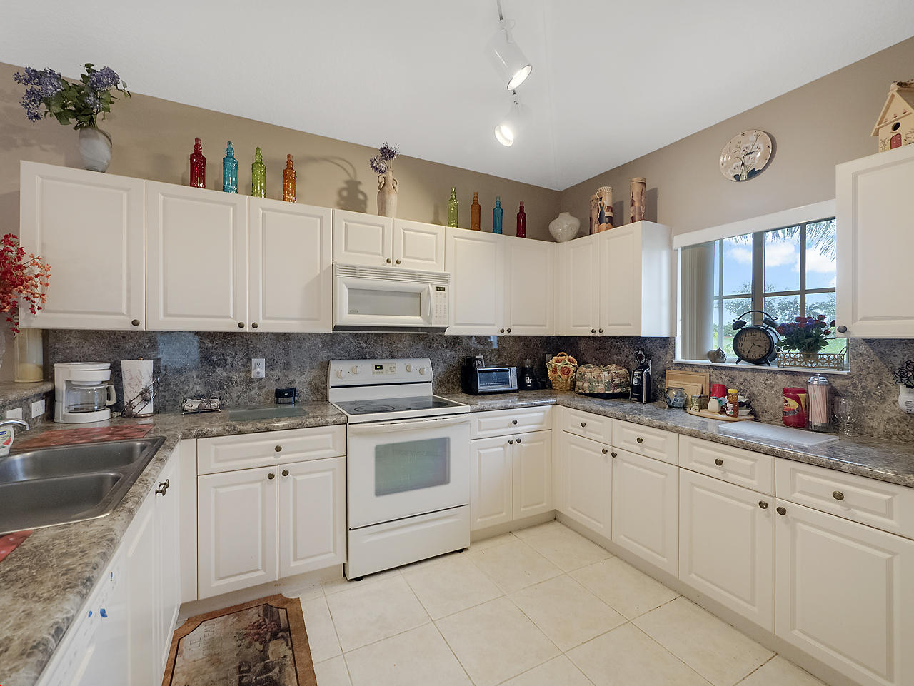 Spacious corner villa with 3 bedrooms and 2 bathrooms. Freshly painted, upgraded light fixtures and ceiling fans. AC is 2 years, washer and dryer are brand new. House has accordion shutters, master has walk in closet. Relax at your screened patio with speakers enjoying the lake view. Driveway for 2 cars. Most of the furniture will stay. Clubhouse offers gym, game room, pool, craft room, aerobic room, movie room, library, ballroom, tennis, bocce and shuffleboard. Active Adult Community. Will not last long,send your offer and enjoy paradise !