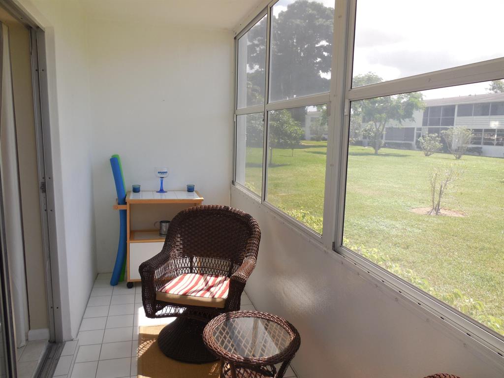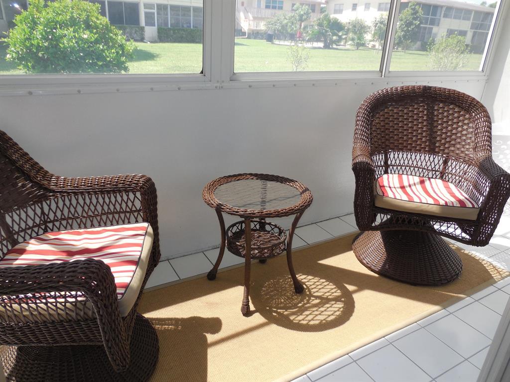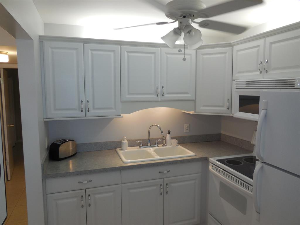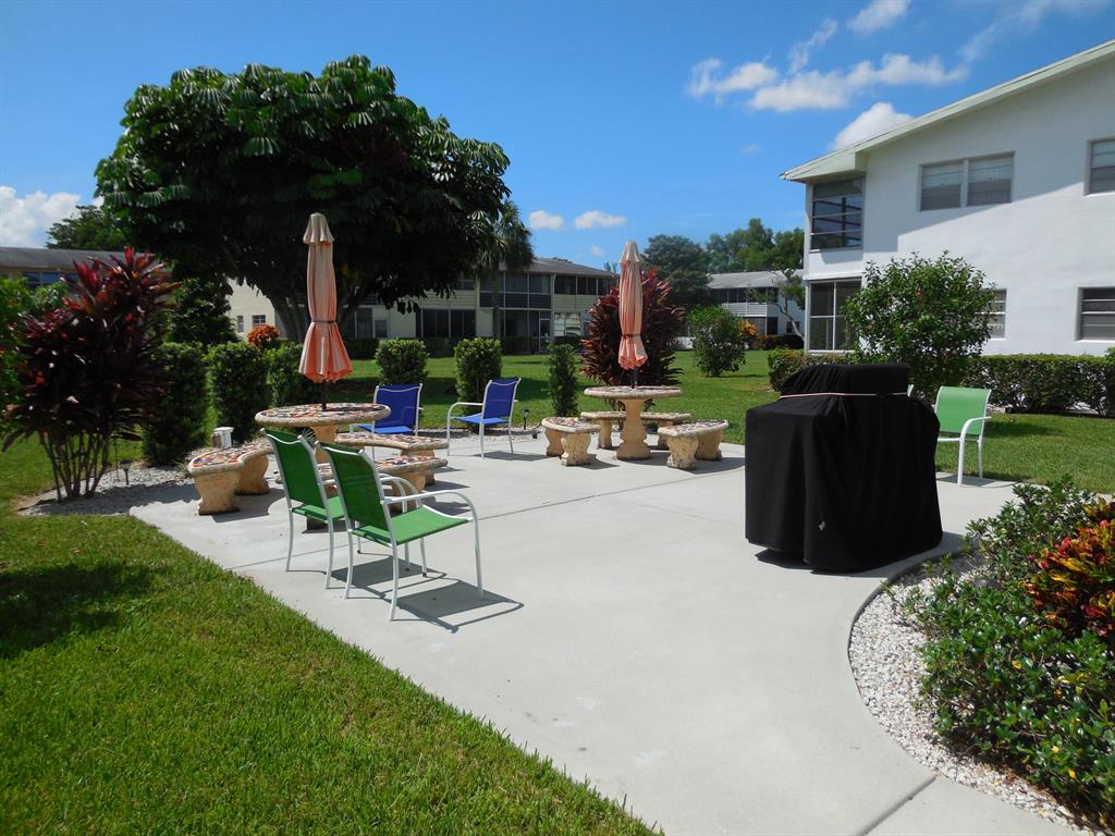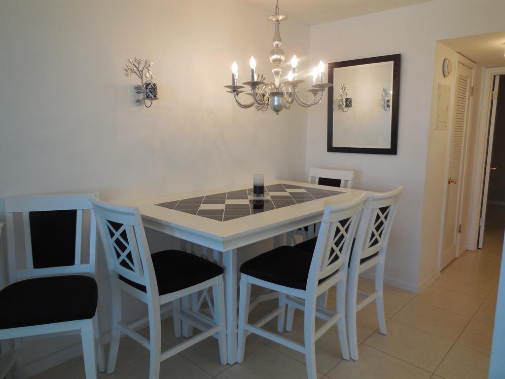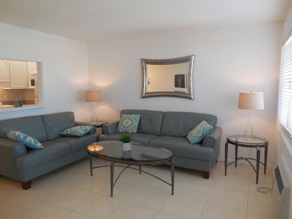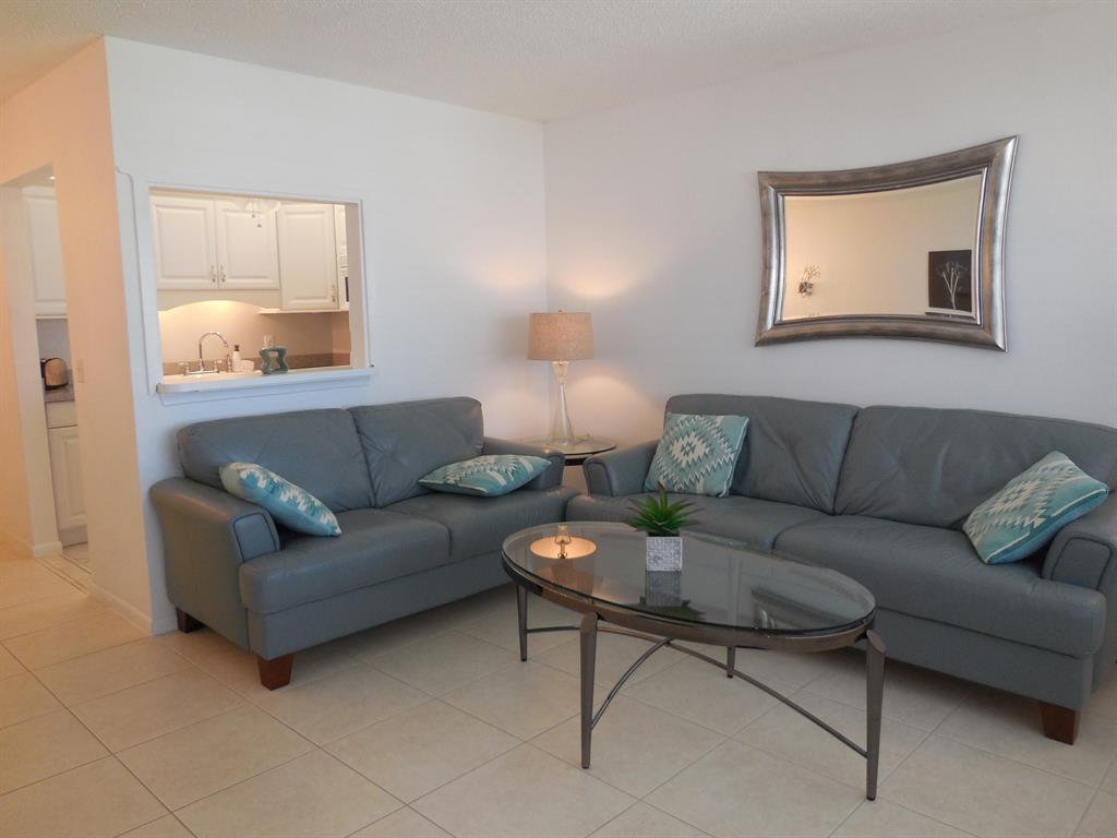 Look no further than this comfortable and tasteful ground floor garden condo in this wonderful community. All tile one bedroom with one bathroom renovated unit offered as fully furnished and turnkey, bring your toothbrush and clothes only. Leather sofas, flat screen TV and pub style dining table are contemporary style and lend a light atmosphere for your winter respite. One of the best run associations and a great location near two of our more popular pools and close to the South gate on Okeechobee Blvd. Kitchen features newer cabinets, in-sink disposal, over the range microwave and refrigerator.