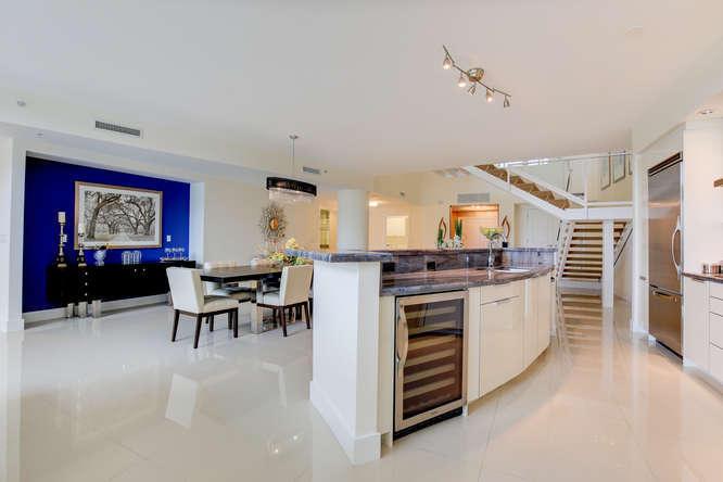 Experience the ultimate in luxury living in this beautifully appointed 2 story designer loft home at the extraordinary Plaza at Oceanside and enjoy almost 3200 square feet of living space. Enjoy 2 bedrooms plus loft and 3.5 baths with floor to ceiling 22 ft. glass walls With Chihouly inspired glass fixtures, 32 inch white Saturnia tiles, this exquisitely decorated residence provides a sleek, modern experience. The residence features an open floor plan perfect for entertaining with a mirrored wet bar and a 42 bottle wine cellar with storage. The kitchen features stainless steel Viking appliances, Poggenpohl European cabinetry, granite countertops and backsplash and a wine and beverage refrigerator. The family room features a custom built-in entertainment center and beautiful exterior views.