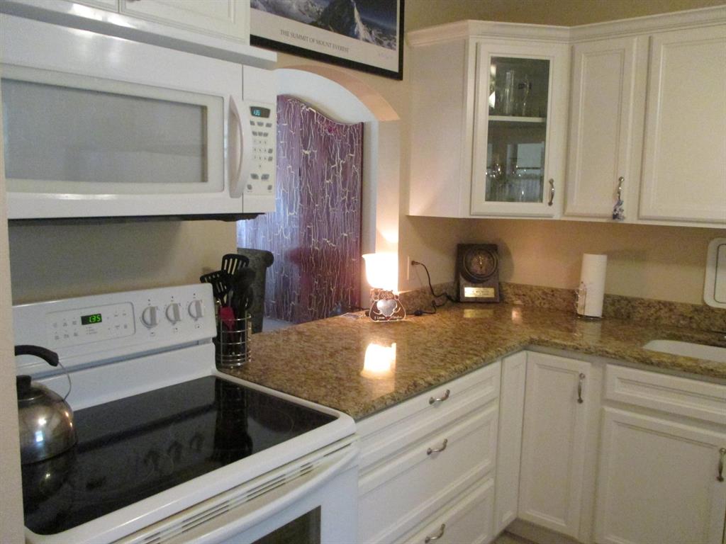 Large updated 2/2 2nd floor unit in elevator building. Martha Stewart kitchen cabinets w/solf close doors, corner lazy susan storage, granite counters, extra storage cabinet in kitchen. Updated 6'' baseboards throughout, Year old W/D, New a/c 2017, brand new water heater, porcelain tile floors, updated guest Bath. Maintenance includes a lot - Comcast cable and internet, water/sewer, 24/7 guard gated, on-site management, Clubhs facilities, budget reserves, bldg insurance etc. One Pet OK up to 30 lbs. No rentals 1st yr of ownership. Active 55+ community with full time social director. Courtesy Bus two days a week to grocery, shops, malls etc. Come Discover Golden Lakes Village.
