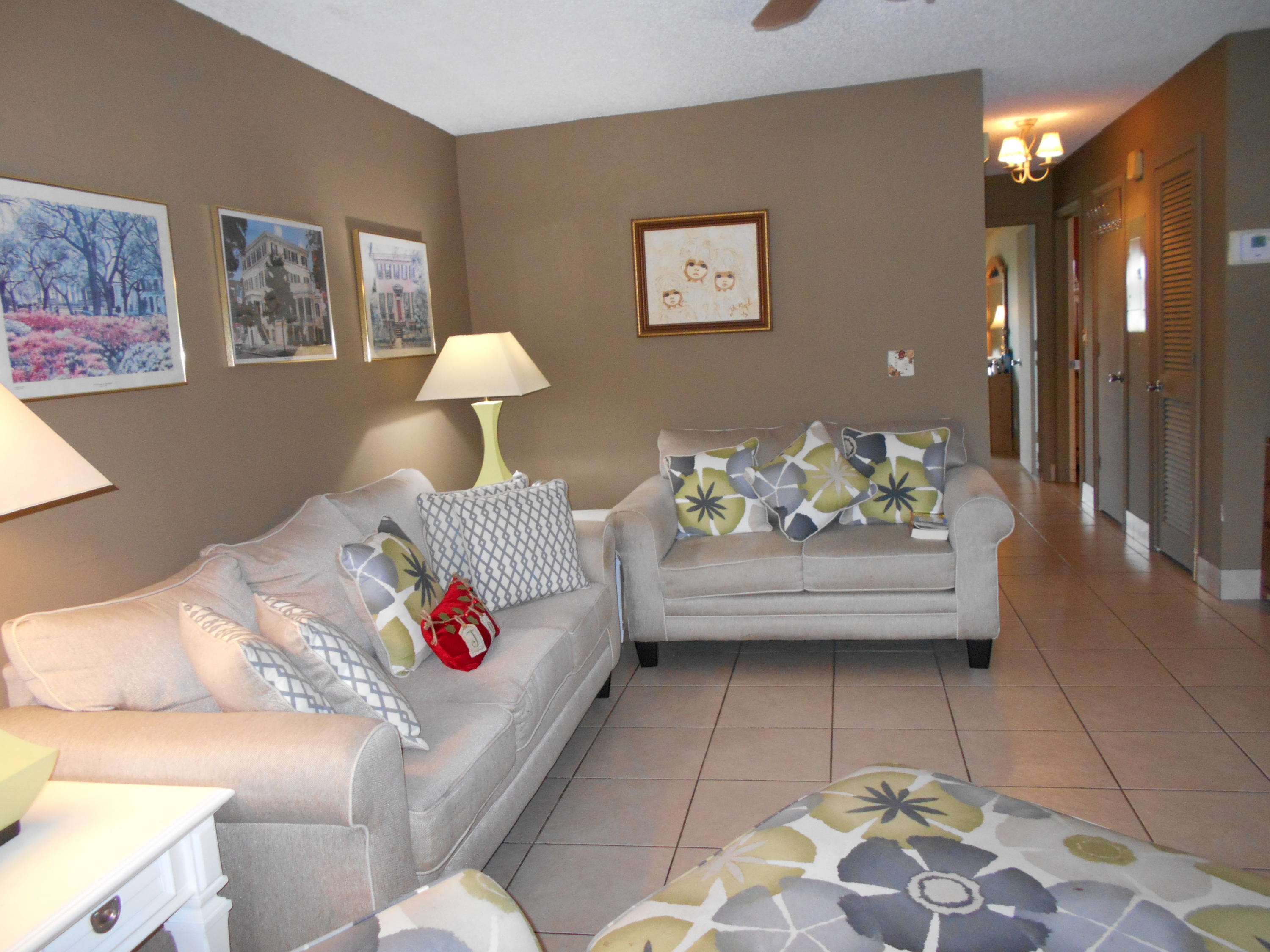 Diamond in the rough, Interior unit, cooler in summer, warmer in winter, beautiful kitchen cabinets, new roof 2011, Ref. approx. 3 yrs., Maytag w/d newer, hurricane protection, tiled floors, exception bedrooms have wood laminate, newer a/c, master bth w/some updates, wood lam. in bedrooms . Close to P.O., Grocery, I-95,Turnpike, 15 min. to PBIA airport