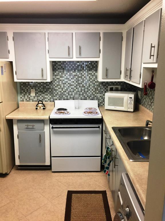 Century Village has so much to offer! Clubhouse, pools, secure gated community, active lifestyle. Lovely, updated 1st floor lakeside condo. Tranquil unobstructed view. Plexi-glass enclosed terrace is perfect for taking in the view. Light & bright. 1 bedroom with 1 1/2 baths, ceramic tile in living area, carpeted bedroom with custom outfitted closets. Contemporary kitchen with ceramic glass backsplash, double SS sinks and built-in full size combo washer/dryer. Decorative ceramic tile detailing in full bath with step in shower. Additional 1/2 bath as well. Partially furnished. Owner has relocated for quick closing.