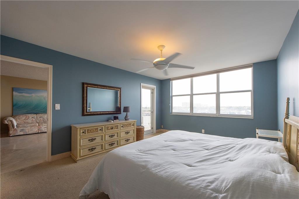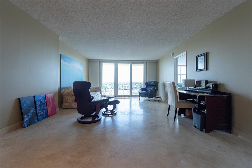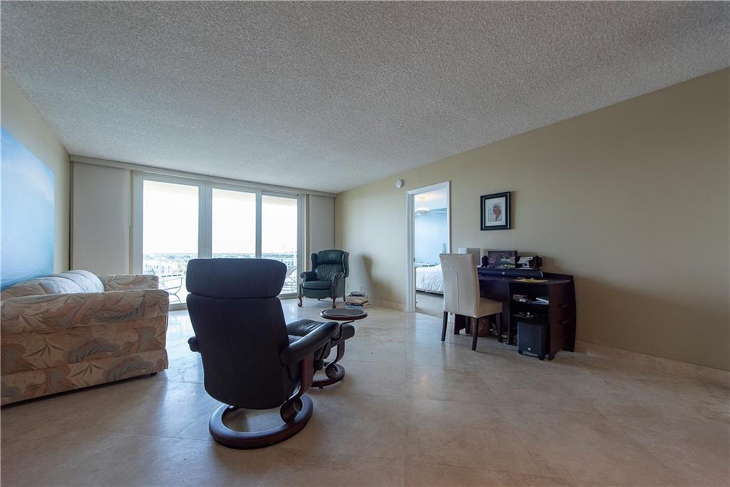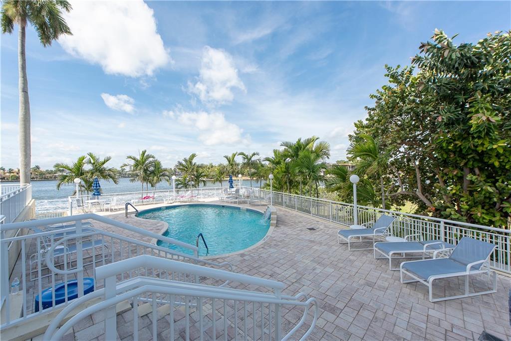 Intracoastal living at Bayshore Towers. This spacious 1BR/1.5BA 7th floor unit offers dramatic city and wide-waterway views and boasts impact windows/doors, a powder room for guests, marble floors, generously sized rooms and a 14' x 7' balcony for entertaining. Amenities include garage parking, heated pool, an immense waterside terrace, additional storage, a gracious lobby and a parking deck for guests. Conveniently located and only blocks to the sand. Makes the perfect as a pied-de-terre or Winter get-away!