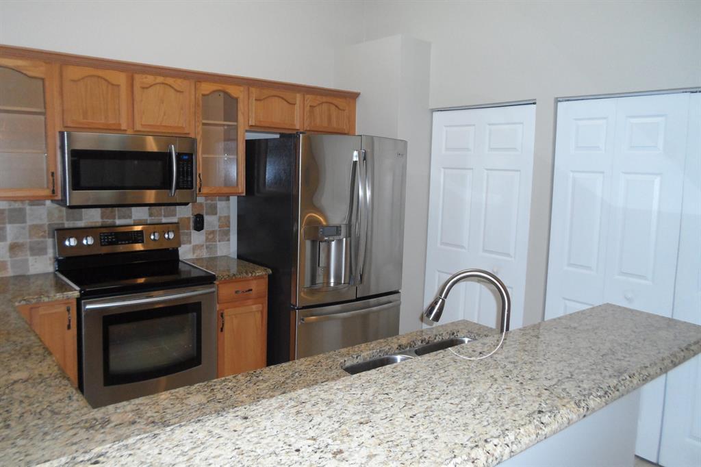 Spacious three bedroom, two bath villa in desirable Bridgeport at Baywinds. This one owner, end unit villa, has an oversized corner that boasts an updated kitchen with granite counter tops, and upgraded wood cabinets. Newly painted interior. This home has been impeccably kept and features high vaulted ceilings, built-in plant shelves, ceiling fans, accordion storm shutters, screened rear porch with tile flooring, and a one car garage. This is a 55+ age restricted community.