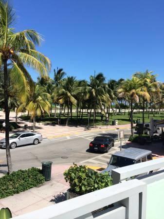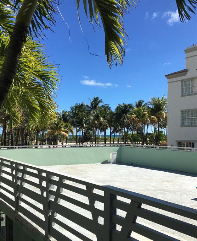 Studio apartment right across from the beach with 2 full size Murphy beds. Front entrance overlooks large 2nd floor terrace/balcony. Direct ocean view from that terrace. Excellent location! Close to all restaurants and nightlife. Walking distance from Lincoln Road and the Miami Beach Convention Center and Jackie Gleason. Elevator in the building. Wood floors. Across from Starbuck's and Haagen Daz. GREAT FOR INVESTORS!