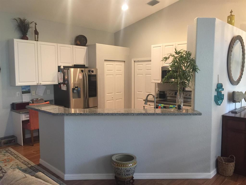 MOTIVATED SELLER... BRING ALL OFFERS... Backs up to wooded nature preserve... Remodeled and Upgraded... Furnishings Negotiable... Awesome pet friendly community... Split plan layout... Large master bedroom with two closets and view of the patio and preserve... Carpeted bedrooms, wood look ceramic tile in living areas, granite kitchen counter tops, new kitchen cabinets, high end appliances, storm shutters, screened patio enclosure, 5 wireless ceiling fans, completely repainted and knockdown finish... Tray ceilings in two bedrooms, vaulted ceiling in living area... Attic storage access in 2 car garage... 10,000sf clubhouse with gym, pool, tennis courts, basketball courts, handball courts, bike paths, billiard room, card room, ballroom, kitchen, arts & crafts room, and kiddie playground...