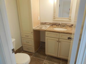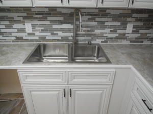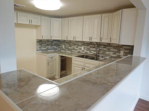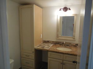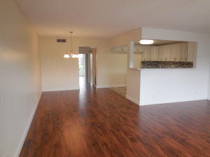 Look no further for your waterfront luxury condo in a Wellington building at Century Village. This just completed one bedroom one and one half bath, 862 sqft, second floor condo has laminate flooring throughout living areas and tile in kitchen and bathrooms. The kitchen has solid wood cabinets featuring soft close drawers and doors, glass tile backsplash and porcelain tile counter top. A stainless steel double bowl sink with extended height flex spray head faucet and high intensity LED lighting make this kitchen the highlight of this beautiful condo.