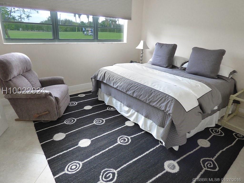 Gorgeous ground floor, full 2 bed designer apartment. Completely renovated. Custom wood & granite kitchen with raised ceiling & open bar. 18" diagonal tile. Granite & tile bathrooms. All-in-one washer dryer. Replaced air conditioning, tankless hot water. Impact bedrm window. Power patio shade, Custom closets. New doors. Furniture negotiable. PGA golf view. Paid up rec lease. Free golf , 14 tennis cts, 7 pools, fitness ctr, restaurant , 24 hr security. HOPA verified . See Broker Rmks below
