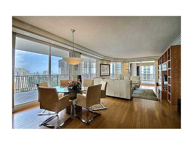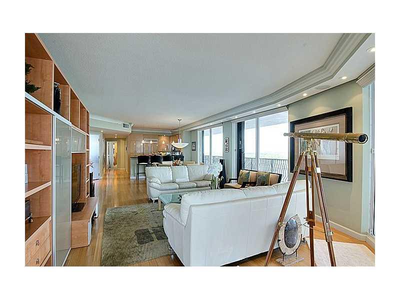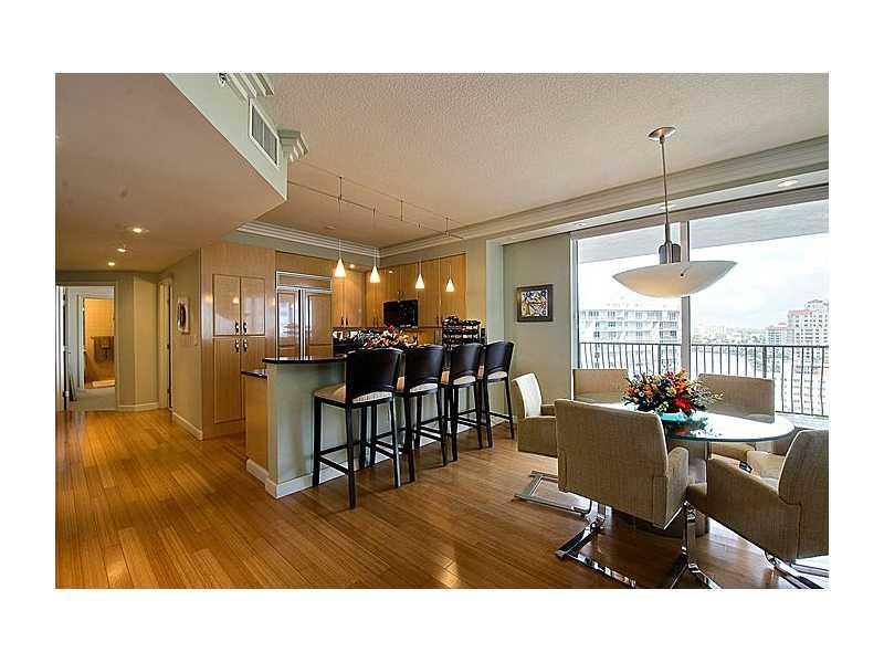 Spectacular Intracoastal, Las Olas Isles, Ocean & pool views from this 20th floor, 2 Beds + Den, 2.5 Baths, NE corner residence. Open kitchen to living room, bamboo & marble floors. Many custom built-ins throughout. Floor to ceiling windows opening onto a huge over 1100 sq.ft. wraparound terrace great for entertaining & outdoor living. Direct elevator access from lobby & garage into a private foyer of residence. 2 any size pets are welcome!