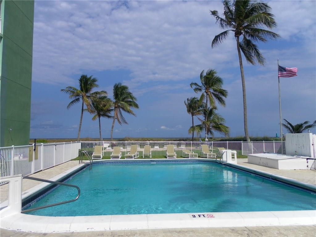 Can you say convenient? Always wanted to own a home on the beach? Look no further! This 2/2 is light & bright & you can walk right out your back door to the swimming pool, tropical tiki hut & sandy beach. No elevators to deal with, just grab your beach bag & GO! Updated w/ new central air being installed July 2016. Clean, white plantation shutters inside for privacy, stack washer/dryer + private screened patio to relax & take in the fresh ocean air. Complex has storage, heated pool & sec. entry.