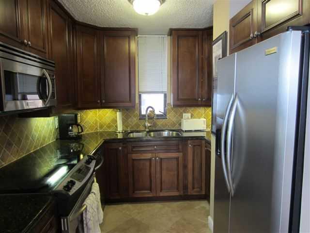 Come live in an oceanfront condo set right on the beach in Pompano. This unit has been updated thru out. The kitchen has cherry cabinets, stainless appliances & granite countertops. The sunny south facing balcony is accessible from the kitchen & the dinin g room. Travertine tile runs thru out, except for the 2 carpeted bedrooms.Unit comes with an extra storage room & sought after 1st level underground parking.Beachfront pool deck, bbq, clubroom, with kitchen, gym, sauna, billiards, 24/7 security. Location!