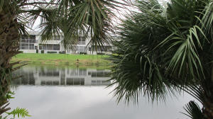 Run don't walk to see the best deal in Century Village! Rare WATERFRONT FIRST FLOOR two bedroom condo w/south exposure. Perfect location close to pool with easy access to West Gate. Enclosed 90sq ft porch is big bonus. Needs lots of TLC but this one is priced to sell. OK to lease one time per year for minimum six months per condo docs. No pets. Must be 55 years or older.