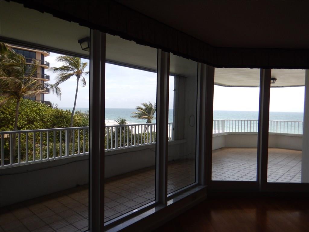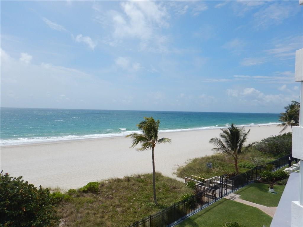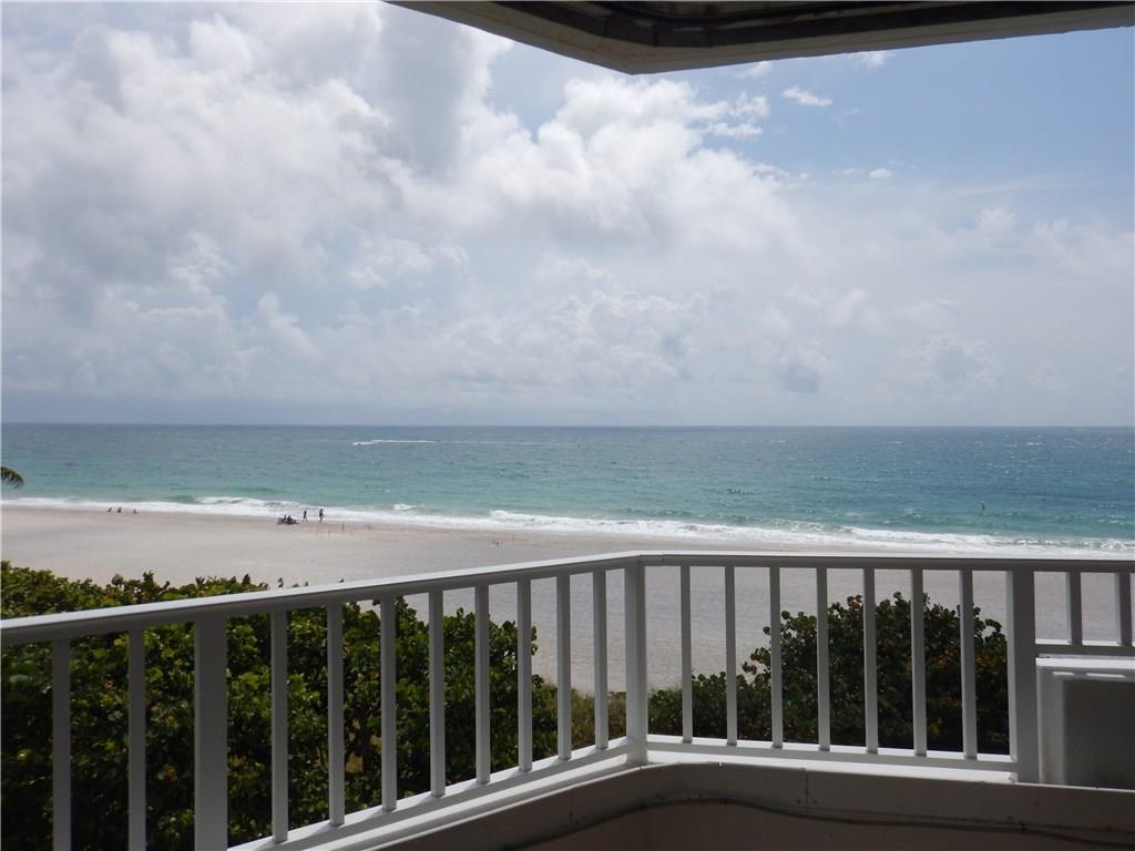 Gorgeous views from every room! Wake up and watch the sunrise on your oceanfront balcony! Beautiful wood floors in main living areas. Impact windows and doors. Fantastic split bedroom floor plan with large walk-in closets and private baths.Murphy bed in front room to stay with unit. Many amenities featuring a fitness center, game room, library, large oceanfront common rooms, kitchen, pool and shuffleboard. Great location within walking distance to shopping, entertainment and dining. Northeast corner unit.