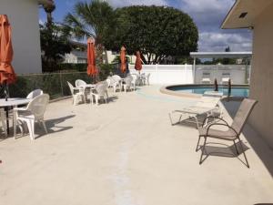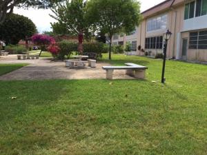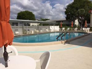 Stunning, spacious, well maintained and cared for by the owners 1BR/1.5BTH ground floor condo in resort style 55+ Century Village community is waiting for new owners to make it their own. Wooden paneling throughout. Large kitchen with new oven, microwave, refrigerator. New tile throughout but bedroom, new accordion shutters, lighting fixtures and window treatments. Huge tiled enclosed patio has exit to stunning garden with courtyard BQ area for Oxford 400 residents and their guests only. Private Oxford club and pool.