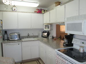 Corner 2/2 Villa with formal dining area. Many updates. Enclosed patio w/sliding glass doors, tile and laminate floors, full size W/D, all knock down finish on interior walls, updated eat-in kitchen. Short dead-end street w/a short walk to satellite Pool. Accordion hurricane shutters on all openings. Some furniture may be available for sale. Active 55+ guard gated community. One occupant must be 55+. No dogs allowed in Phase A only max of 2 indoor cats. Cash or conventional financing only per assoc.