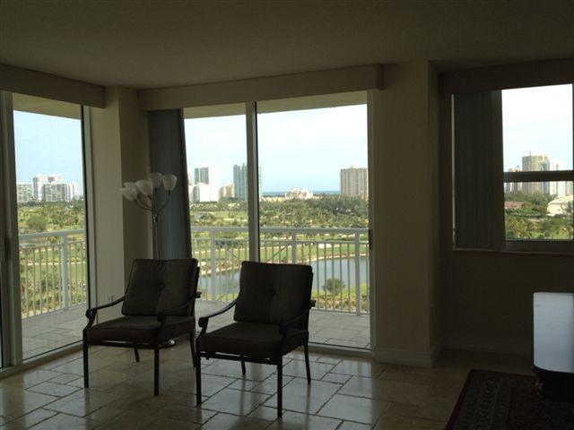 Beautiful Unobstructed Golf and Ocean view. Best line in the Building. This Corner unit has 2 bed and 2 bath, Jerusalem Stone floors in the living areas, carpet in the bedrooms. State of the art fitness center. All the amenities. Centrally locates on the Aventura Circle, just across the Mall.