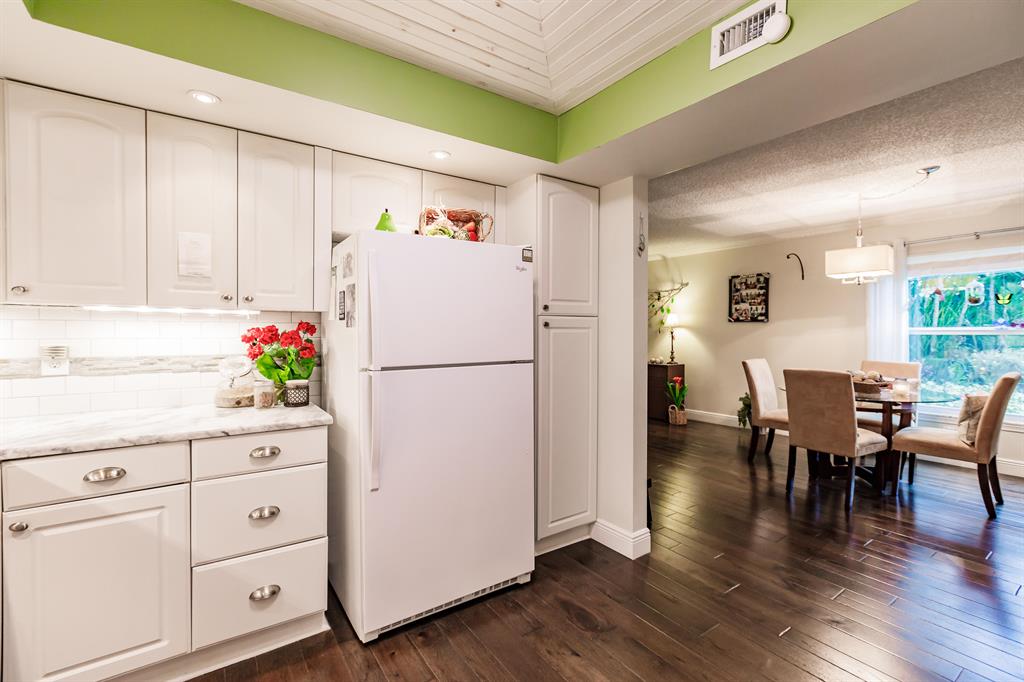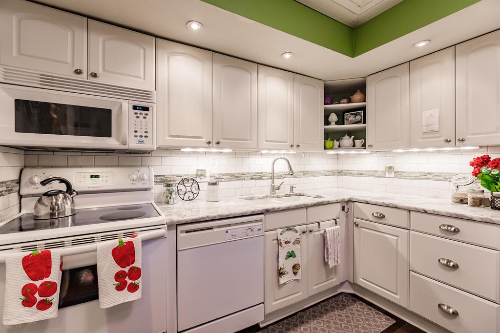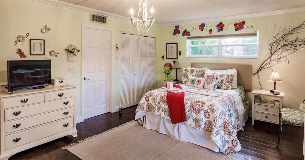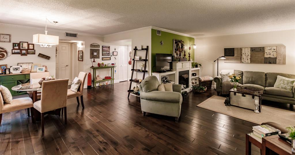 Beautifully renovated and move-in ready! Rarely on the market spacious & private first floor end unit located within the premier Greenbrier section of Century Village. Impeccably maintained and updated with gorgeous hardwood floors, crown molding, impact windows,electric fireplace with book shelves, and renovated kitchen & baths. Updated Lanai with impact windows, impact exterior door, and new slider (non-impact with accordion shutter). Close to private pool for Greenbrier residents. This building includes laundry in the HOA payment. All you need to do is move in and enjoy! Century Village is an active 55 and older community centrally located in Palm Beach County.