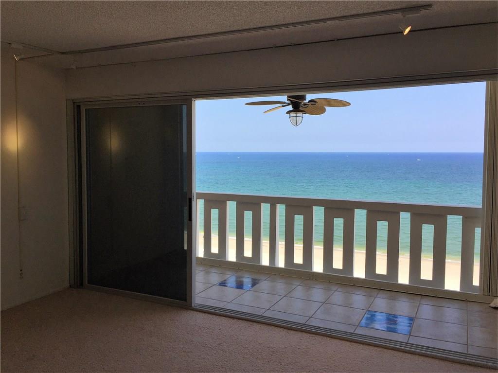 Magnificent Direct Ocean View, smack on the Beach . This beautiful 1300 square foot unit has a high end Kitchen with updated appliances.A unique Tike Bar to enhance the beach atmosphere. The baths are updated and the unit is ready for the sun. The building is well maintained with on site security. Pool area and elevators recently being updated to a level of excellence not matched to many condos. Short walk to the revitalized Pompano Beach. Building where one occupant is 55+. PRICED TO SELL