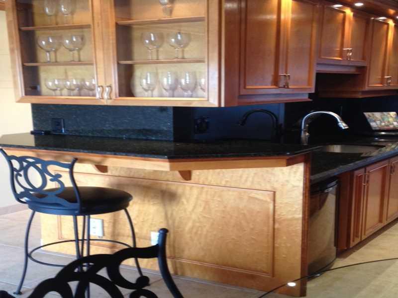 High floor 2 bdrm 1 bath corner unit with parking in Victoria Park Tower with spectacular views of downtown; meticulously remodeled with custom maple hardwood cabinetry in kitchen and maple built-ins throughout, granite counters, stainless appliances, win e refrigerator, high bar, custom lighting, large restored balcony with gorgeous views, new interior doors,and crown molding throughout. Building is renovated and meticulous. Walk to the ocean, Galleria Mall, Gateway theater and countless restaurants.