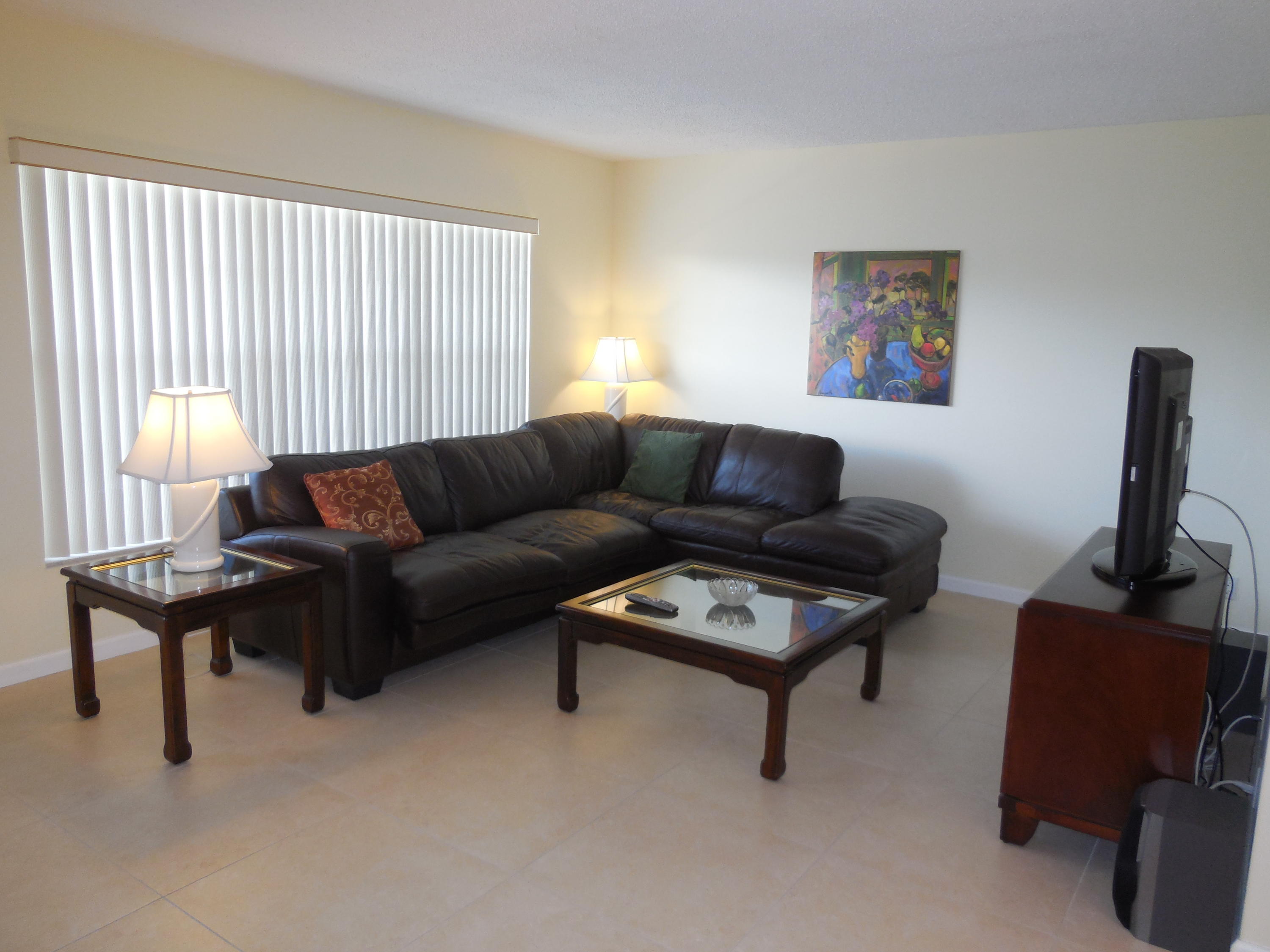 You must see this professionally renovated one bedroom, one and one half bathroom, penthouse condo. Enjoy beautiful water views of the lake from a comfortable screened lanai. A short walk to either of Wellington Federation resident-only pools. Total renovation completed in 2011. 24 inch ceramic tile was laid throughout entire condo with baseboard, all light switches and outlets were replaced, and the electric hot water heater was replaced. A double sink, tile backsplash, solid wood cabinets and white appliances were added in the kitchen. Matching solid wood vanities, comfort height toilets, and tile tub surround in bathrooms were also added. This unit also features central A/C with a humidistat. Enjoy wonderful views and tropical trade winds from this top floor sanctuary.