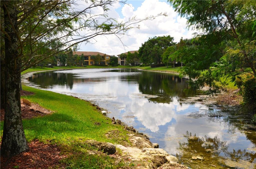 Beautifully upgraded 2nd floor home overlooking water. Corner unit providing lots of natural light! Kitchen features granite countertops, wood cabinets, & newer stainless steel appliances. Wood blinds, recessed lighting, wood floors in bedrooms. Screened, tiled patio overlooks lake w/ master bedroom access. One car garage, burglar alarm, & newer a/c. Enjoy Heron Bay amenities including 2 resort style pools, 12 tennis courts, fitness center, kids splash park, playground & more.Parkland's top rated schools!