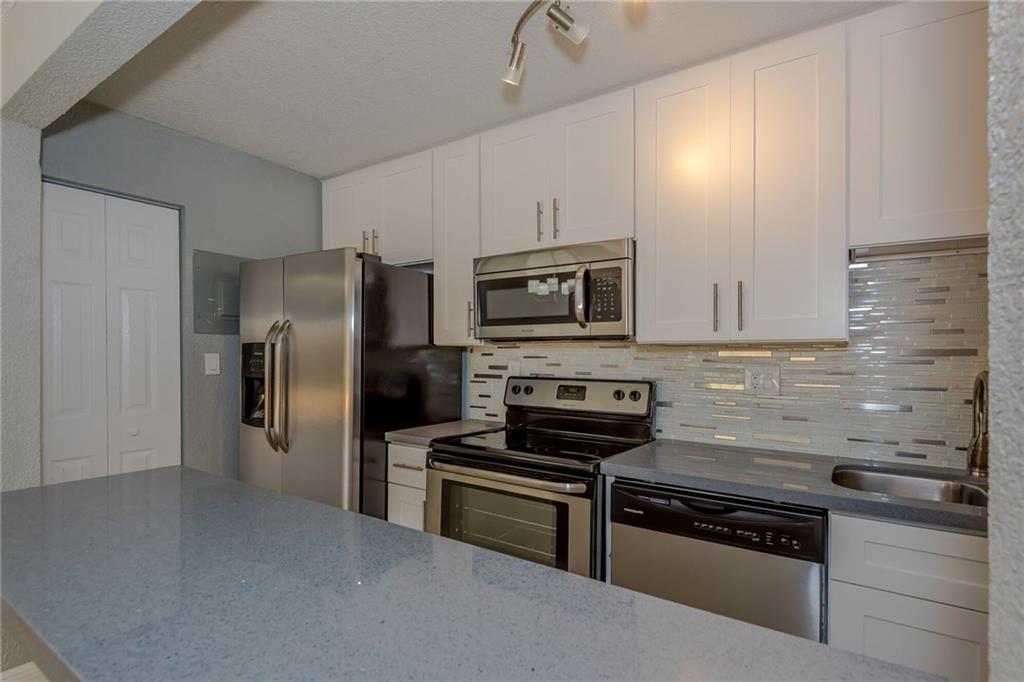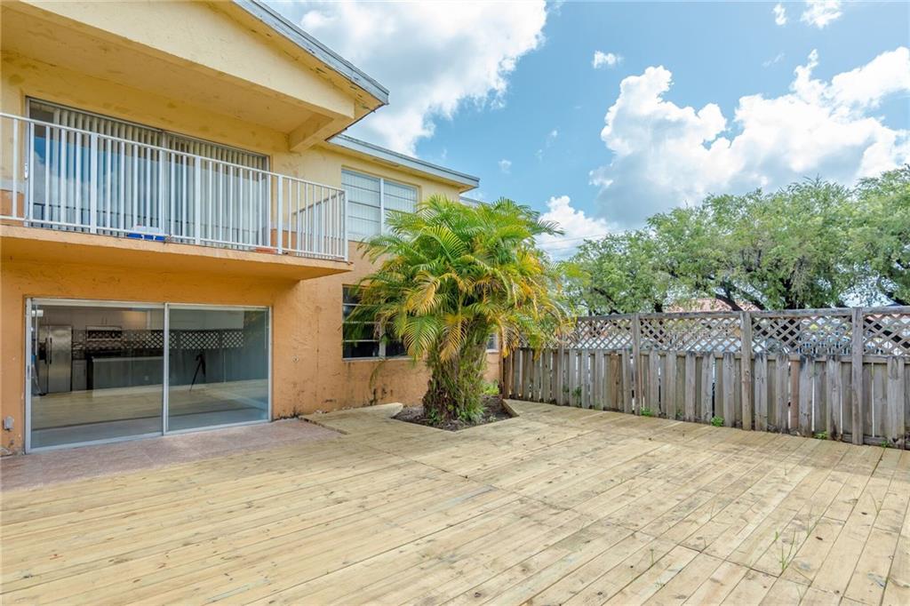 Probably the nicest unit at Doral Gardens. Completely updated first floor corner unit with extra-large patio and wood deck. Remodeled bathrooms and Updated modern kitchen with Quartz countertops & brand new stainless appliances. Wood and tile floors throughout the unit. EASY TO SHOW . Special assessment paid by the seller.