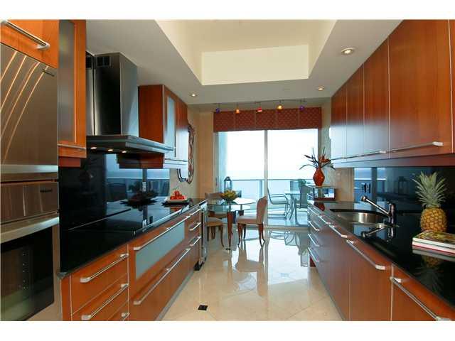 Enjoy sunrise and sunset from this contemporary flow-thru home offering spectacular direct ocean and Intracoastal views. Private elevator to your foyer, floor to ceiling impact glass, gorgeous marble, granite, custom lighting and finishes throughout. Be drooms w/ en suite bath and WIC. Approx 580sf of balconies and stunning views. Stylish formal living and dining room, gourmet kitchen w/ breakfast nook, Italian cabinetry, Miele & Sub zero appliances, 2 pkg spaces, a/c storage, spa, gym, tennis & valet.