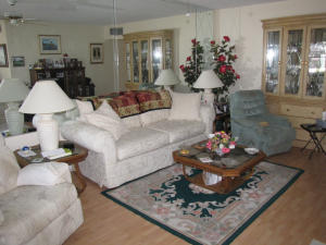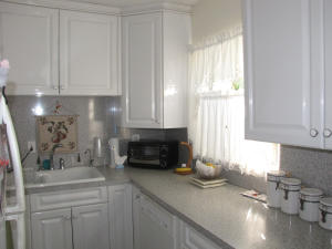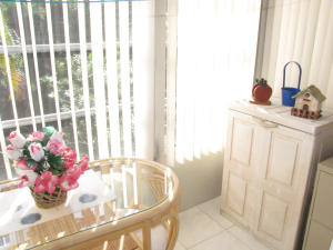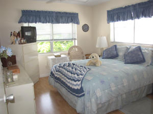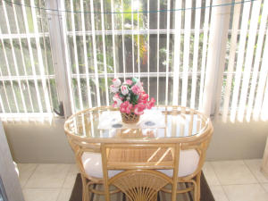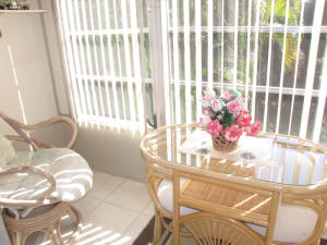 Light and bright second floor corner unit. Central air, accordion shutters, fully renovated kitchen with 42" cabinets and lazy susans to maximize storage space. Tankless water heater to save energy. Pergo floors in living area. Tile in kitchen and bathrooms. Beautifully furnished. Lovely garden view. Furniture included (exclude personal items, 1 TV, stereo, computer desk, cabinet next to desk and toaster oven). Ceiling fans, window treatments, mirrored living room wall and enclosed porch with tile floors. 55+ Community.