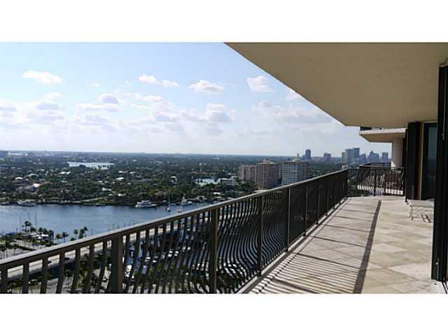 Incredible ocean and Intracoastal views from the 23rd floor of this beautiful, south facing, sunny 2 bedroom plus den, 2.5 bath unit in prestigious Jackson Tower Las Olas. Ceiling to floor windows, granite kitchen counters. Marble floors both inside and o ut on the HUGE balcony with southern exposure. Private elevator foyer. One block from the beach, Intracoastal, restaurants, marina and shops. Full service luxury building with valet parking and 24-hour security. Pets welcome.