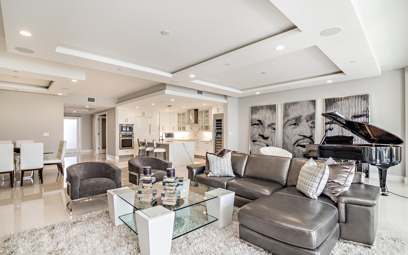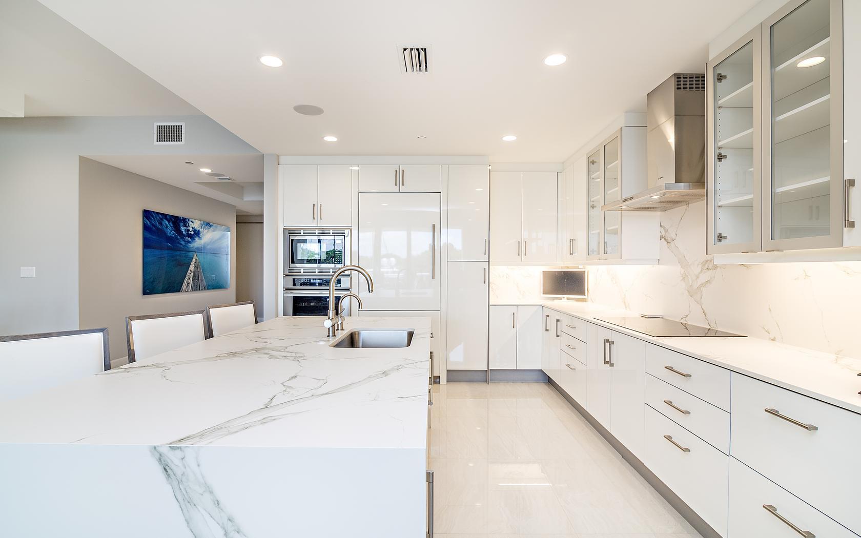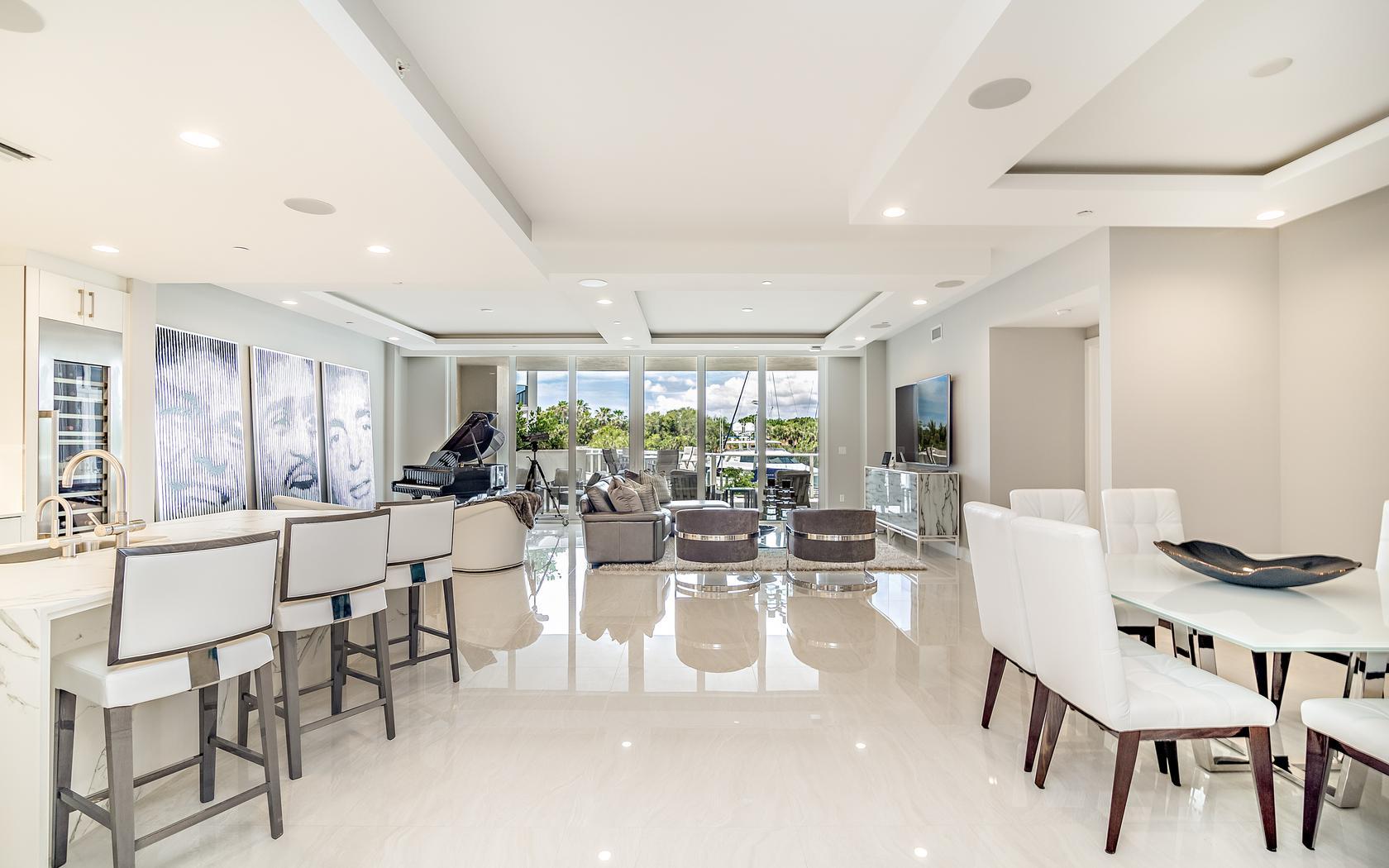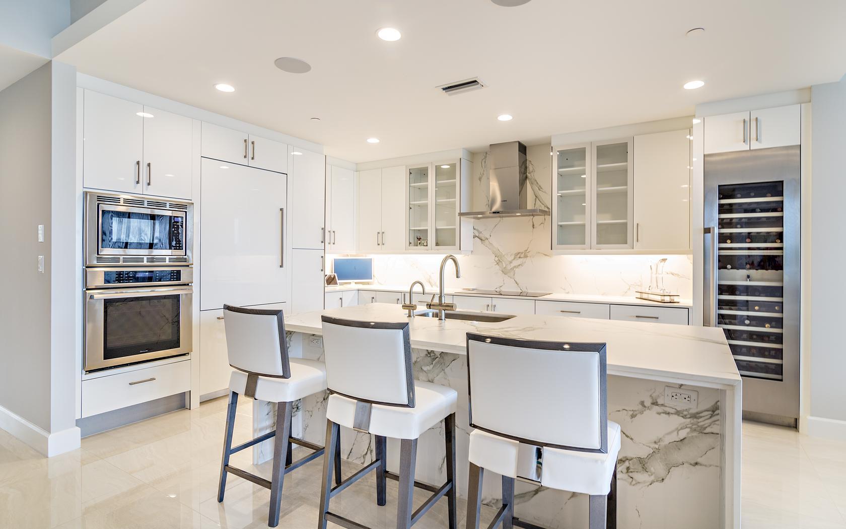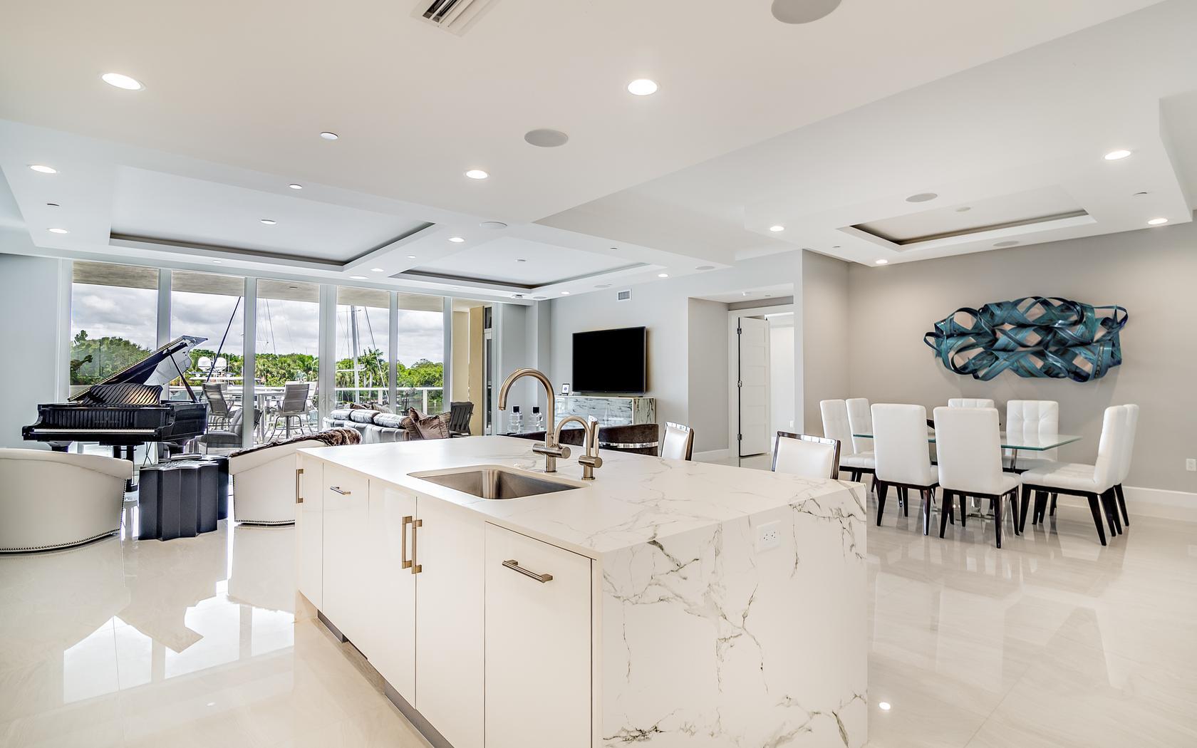 FABULOUS TWO BEDROOM + TWO 1/2 BATH + STUDY.. which boasts Superior Amenities with a Semi-Private Elevator Entry with an incredible Southern Exposure of the Marina. The interior is Professionally Designed with Luxury & Perfection in mind. A Chefs Dream Kitchen with an expansive Waterfall Island, Grohe fixtures,Thermador Appliances which includes Tower Wine Cooler, Induction Cooktop,Two Drawer Beverage cooler, etc. Lighted Coffered Ceilings, Power Shades, Speakers thru-out/wired to be Smart,Custom Sliding Barn Doors, Professionally designed closets, Master Frameless Dual Shower controls with Body sprays/ Rain Shower Head by Grohe through-out. Lush Soaking Tub surrounded with Tiled walls with Inlaid Mirror,etc. Over 600 Sq
