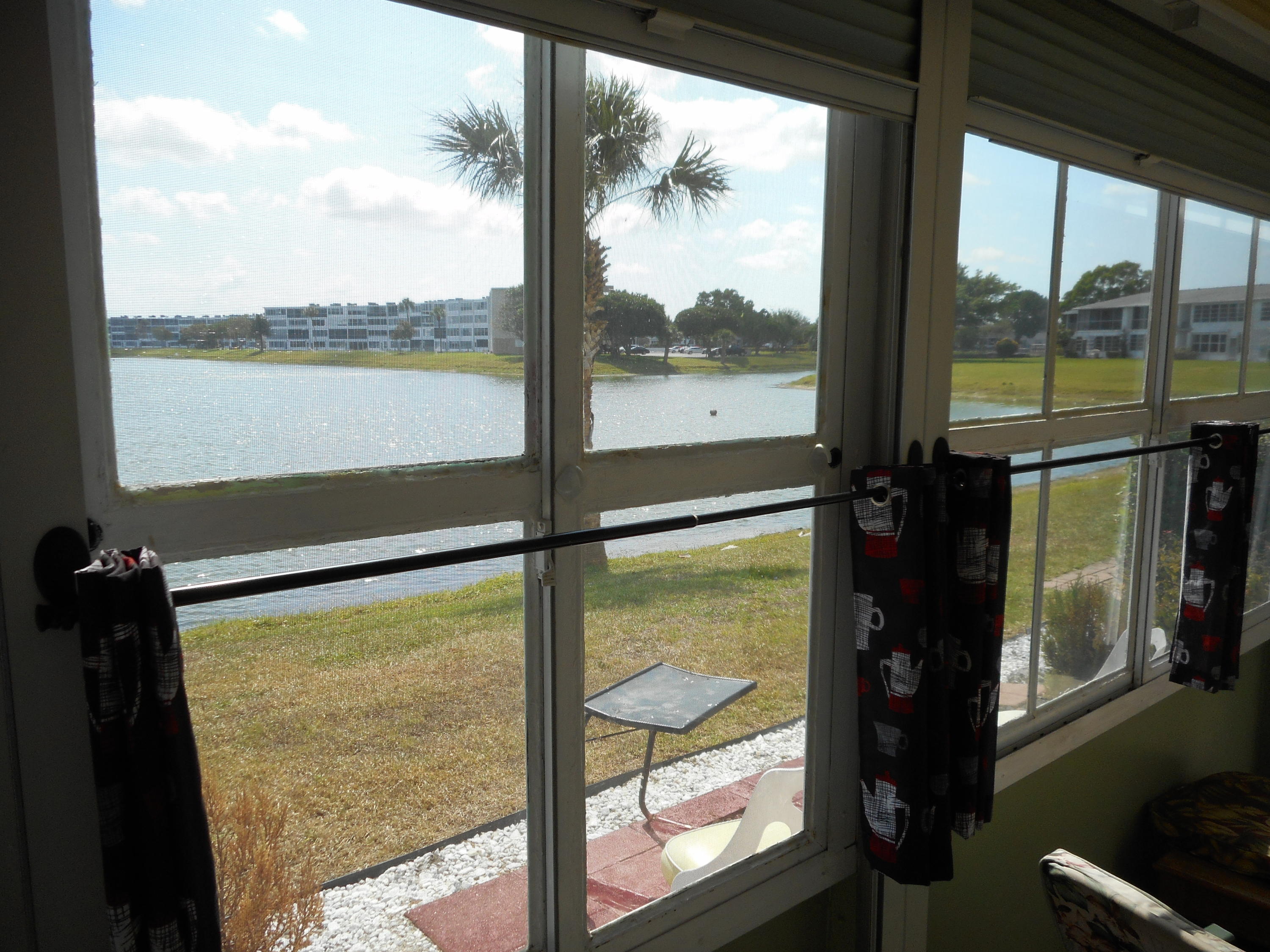 Special 1st floor location with panoramic lake view. This unit has an east facing patio to enjoy the sun in the early part of the day and shade in the afternoon. Open floor plan with tiled floors throughout. Assigned parking space right in front of unit. Tennis courts conveniently located in front of the building. 55 yrs and older community.