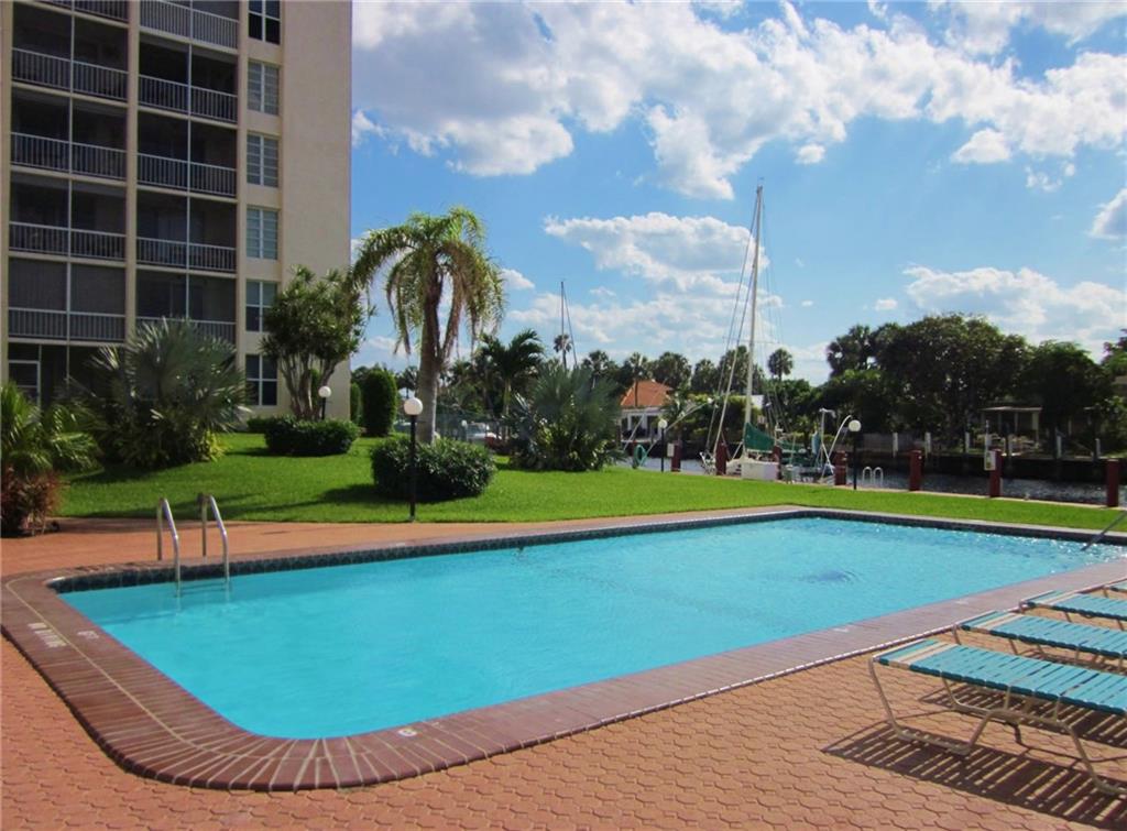 Fantastic location and great views! Move in ready, fully furnished turn key condo. Fully renovated with open kitchen, wood cabinetry, granite countertops & stainless appliances. Marble floors flow throughout the condo and the Impact windows will provide peace of mind. Newer A/C & Hot water heater. Relax and enjoy the water/pool views from your screened balcony. New elevators and lobby. Community dock, beautiful pool area/grounds. Walk to Private Gated Beach Access with BBQ's, picnic tables and showers.