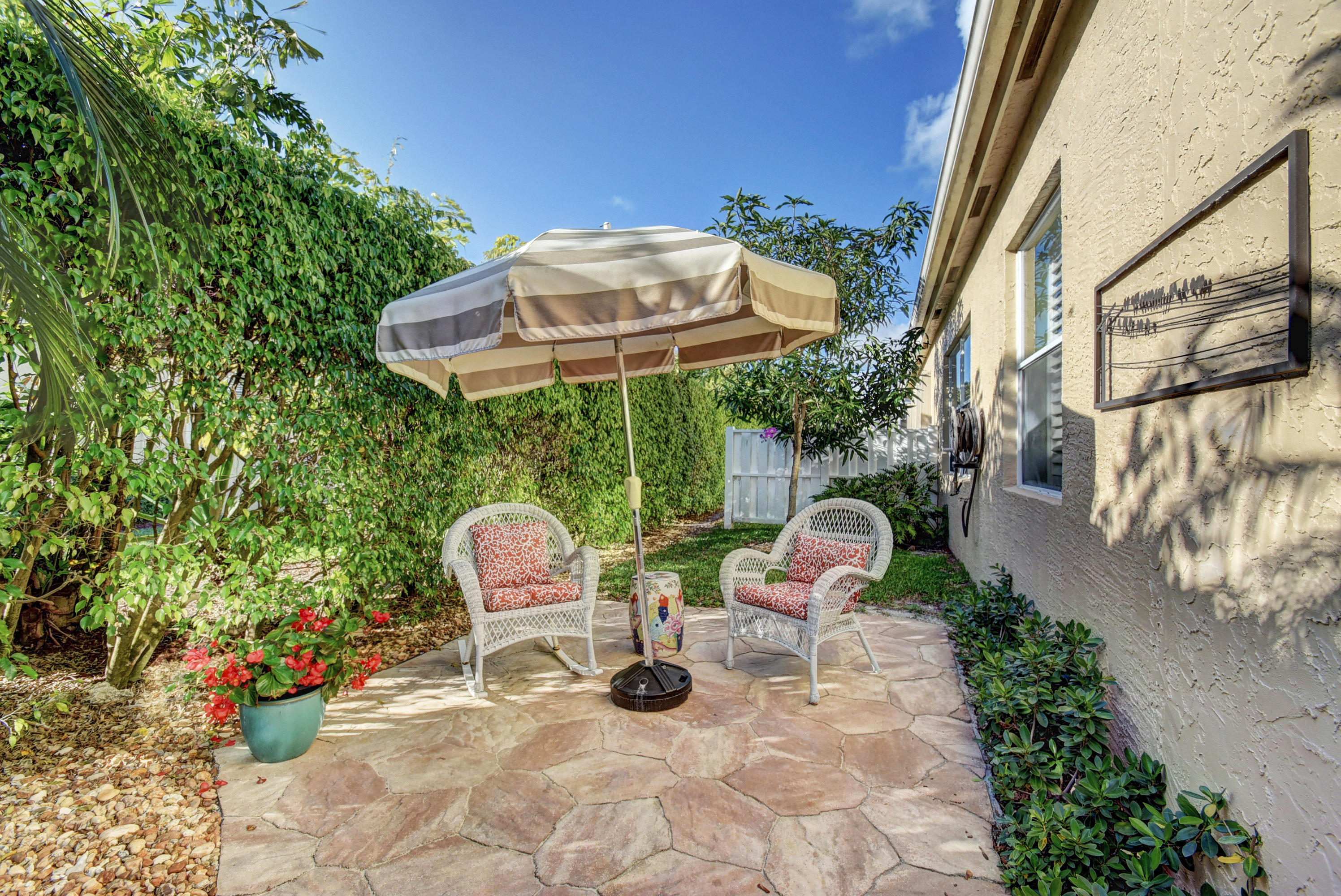 YOU WILL FALL IN LOVE THE MOMENT YOU OPEN THE FROSTED GLASS FRONT DOOR WITH THIS EXTENDED VILLA, ONLY FEW IN THE COMMUNITY, THAT HAS THE FEEL OF A SINGLE FAMILY ROOM.THE BONUS ROOM HAS SLINDING GLASS DOORS FLOOR TO CEILING AND ALLOWS THE OUTDOORS IN. THIS ROOM CAN BE USED AS A FORMAL DINING ROOM, PLAYROOM OR FAMILY ROOM. THE KITCHEN HAS BEEN UPGRADED WITH 42'' WOOD CABINETS, GRANITE COUNTER TOPS AND PULL OUT CABINETS. THE LIVING AREA HAS 18'' PORCELAIN TILE AND THE HOUSE WAS PAINTED WITH CUSTOM PAINT. THE GUEST BATHROOM HAS GRANITE COUNTER TOP AND IN THE MASTER BATHROOM YOU WILL FIND A CUSTOM MADE LINEN CLOSET THE WINDOWS HAVE PLANTATION SHUTTERS TO BRING THE OUTDOORS IN AND BLOCK THE HEAT OUT. ALL THE CLOSETS ARE ALSO CUSTOM FITTED. THE HOUSE HAS A STONE PRIVATE PATIO WITH A MANGO TREE