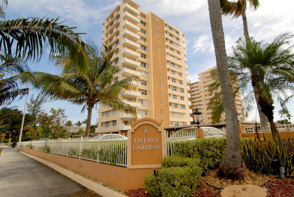 Beautifully remodeled 2 Bedroom/ 1.5 Bath condo in Tiffany Gardens. Partial water & ocean views, living dining area with balcony overlooking the pool & partial ocean / lagoon views. Remodeled great, bright open kitchen. Community pool with common area, putting green, shuffle board, Bocce Court, laundry facilities. Access to beach in just seconds from the building. Impact glass, extra storage located on the same floor. A must see!!