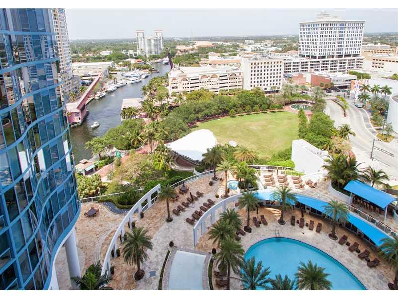 Gorgeous 18th floor Lexington model w/ Panoramic views thru floor-ceiling impact glass including breathtaking sunsets the New River & pool. Enjoy spectacular events like the WinterFest Boat Parade, Air/Sea Show, July 4th. Features include a split floor pl an, Espresso wood floors in living areas, and bedrooms, Gourmet kitchen w/ Snaidero cabinetry & granite counters. Luxury building with concierge, billards, fitness center, gym, spectaular pool w/ surrounding hot tub, grill, wet bar and sundeck.
