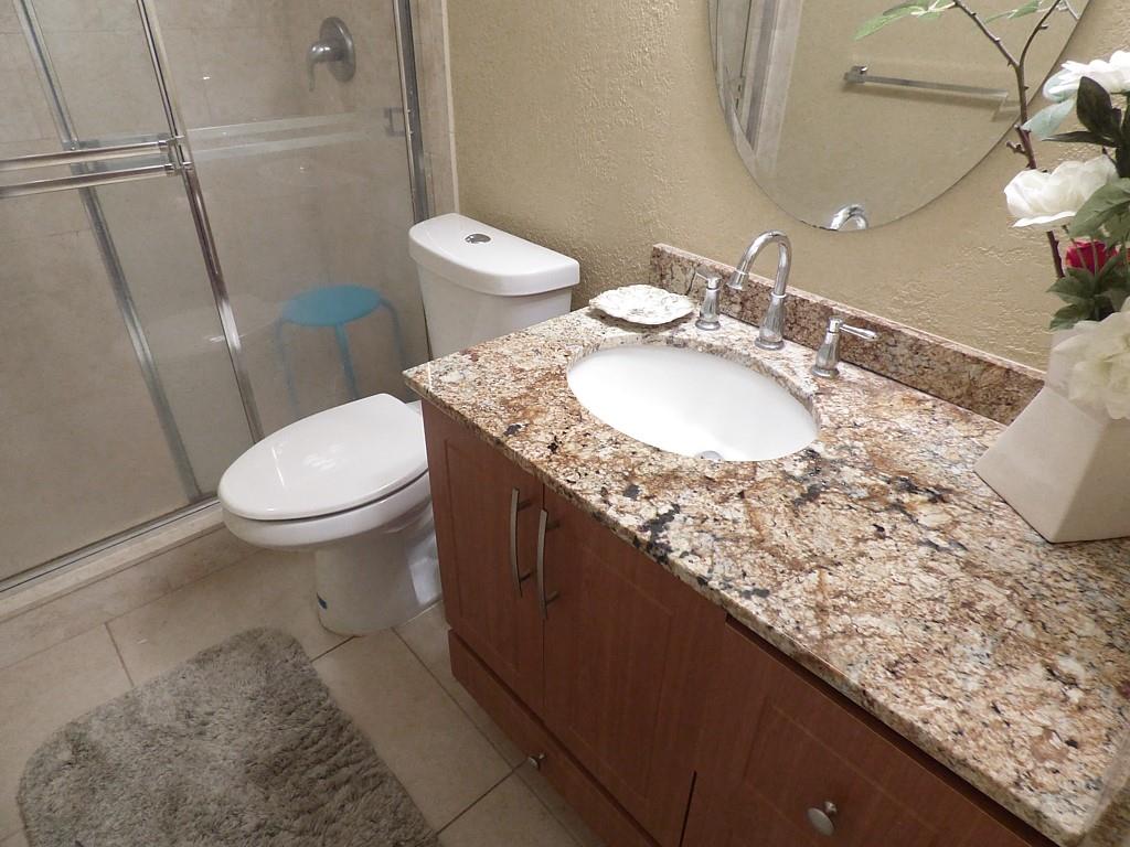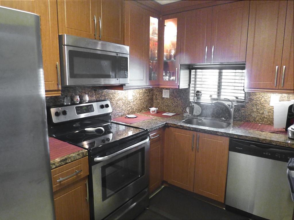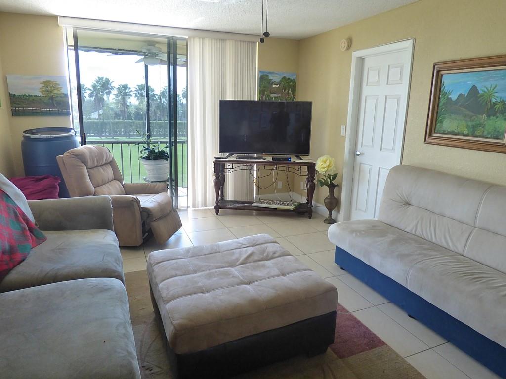Renovated full 2 bedroom unit. Open floor plan with both bedrooms in back. 1/2 bath converted to full bath with shower. Remodeled kitchen with raised ceiling, wood cabinets, granite counters and stainless appliances. Both bathrooms completely remodeled. 1 8" tile throughout. 4 ceiling fans, newer air cond. Paid up rec lease. Free golf , 14 tennis courts, 7 pools, theater, fitness ctr, restaurant , 24 hr security,. Assoc. represents for older persons authorized (HOPA). See Broker Remarks for qualifications