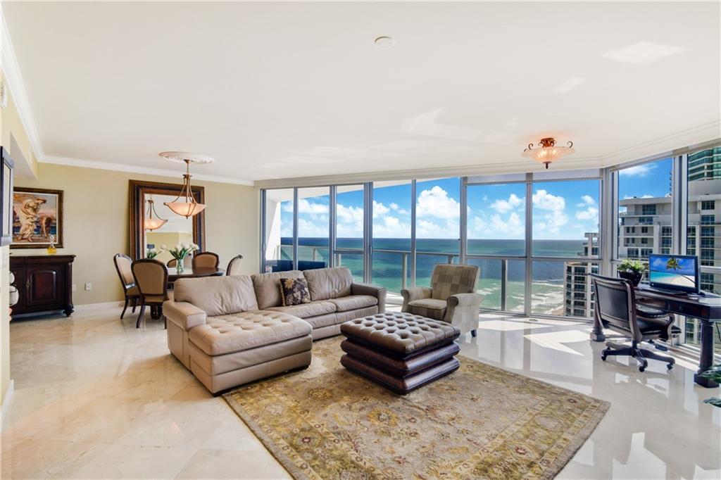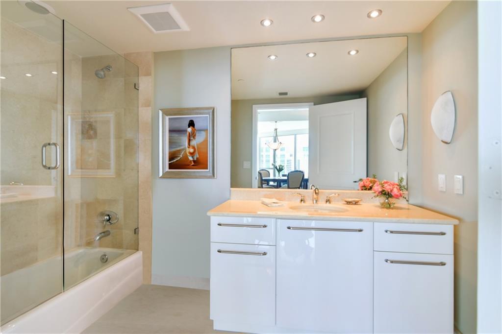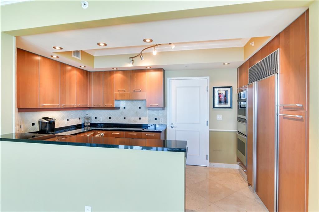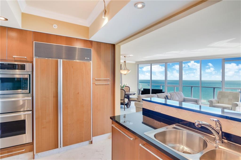 STUNNING SKY HOME WITH THE BEST OF EVERYTHING! PRIVATE ELEVATORS OPEN TO MAGICAL OCEAN VIEWS. IMPECCABLE MARBLE FLOORS THROUGHOUT. VENETIAN PLASTER IN THE FOYER WITH CRYSTAL CHANDELIER AND SCONCES. CROWN MOLDING THROUGHOUT THE CONDO. THE SNAIDERO CUSTOM KITCHEN BOASTS MARBLE BACKSPLASH, SUBZERO REFRIGERATOR,MIELE DISHWASHER, THERMADOR COOKTOP AND OVEN! EACH BEDROOM HAS OCEAN VIEWS. THE OVERSIZED MASTER SUITE IS A WOW! CUSTOM WALK IN CLOSET AND SEPARATE LINEN CLOSET. FOR THAT LUXUROUS RELAXING SOAK IN THE TUB, THE MASTER BATH BOASTS GOLD FOIL PAINT ON THE COFFERED CEILING OVER THE JACUZZI TUB AND A VIEW OF THE CRYSTAL SCONCES SPARKLING ON THE MIRROR. EACH BEDROOM HAS BLACKOUT SHADES. SOLD FURNISHED. IF YOU HAVE AN EYE FOR DETAIL, THIS RESIDENCE IS FOR YOU!