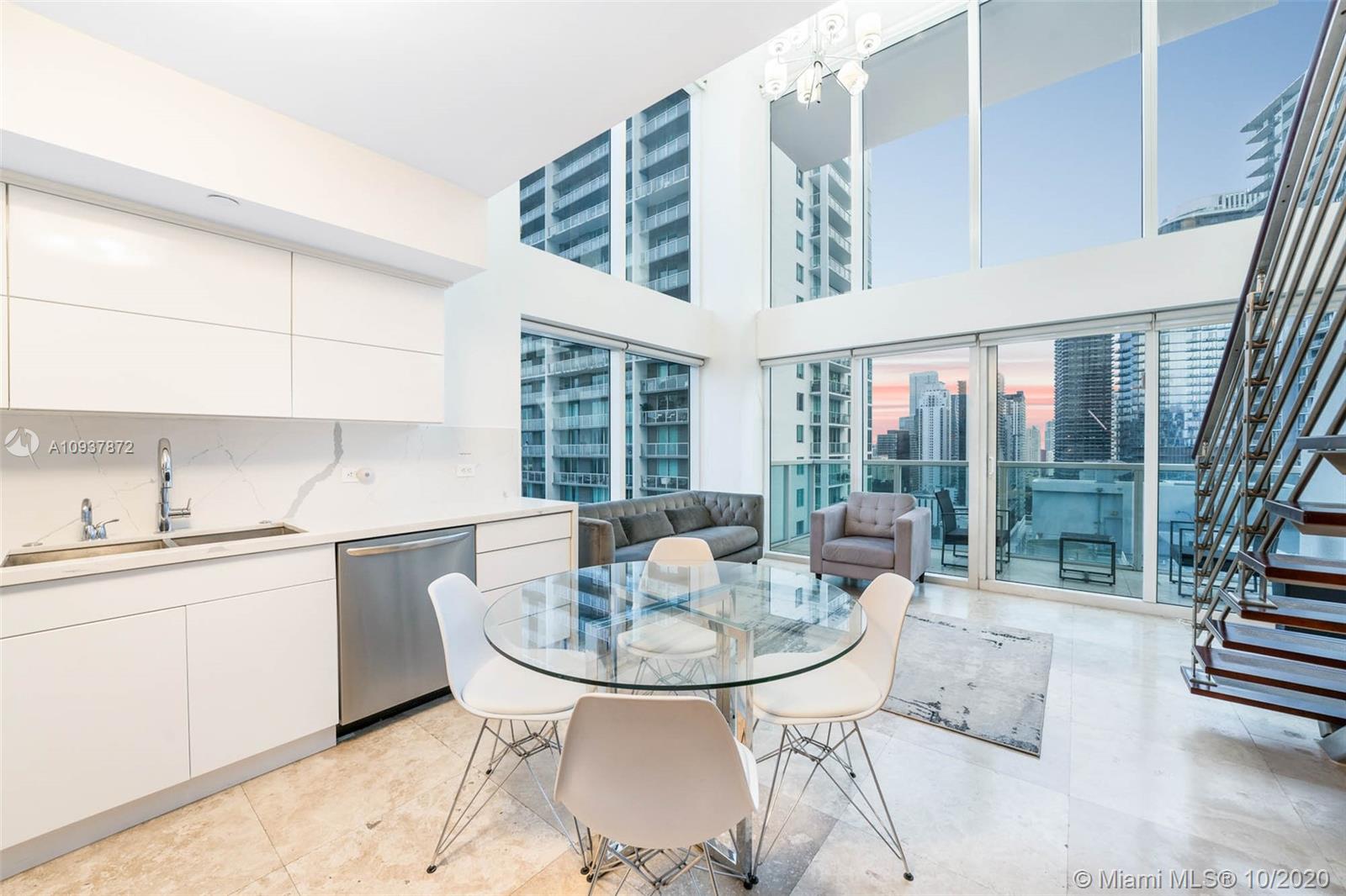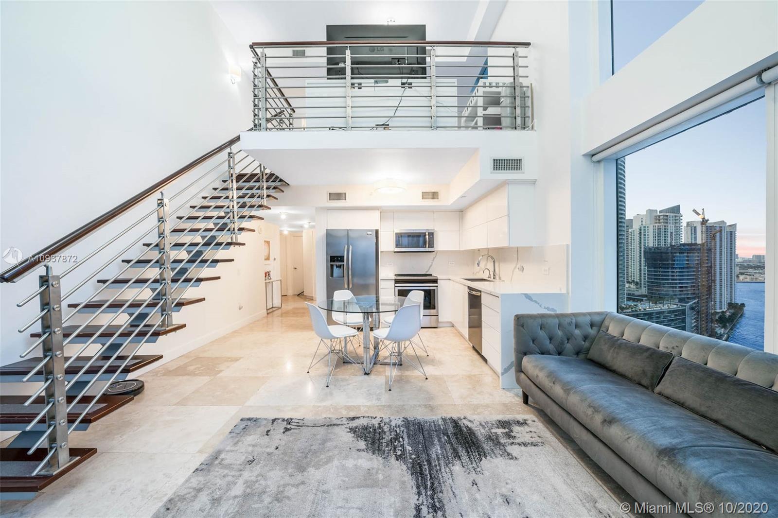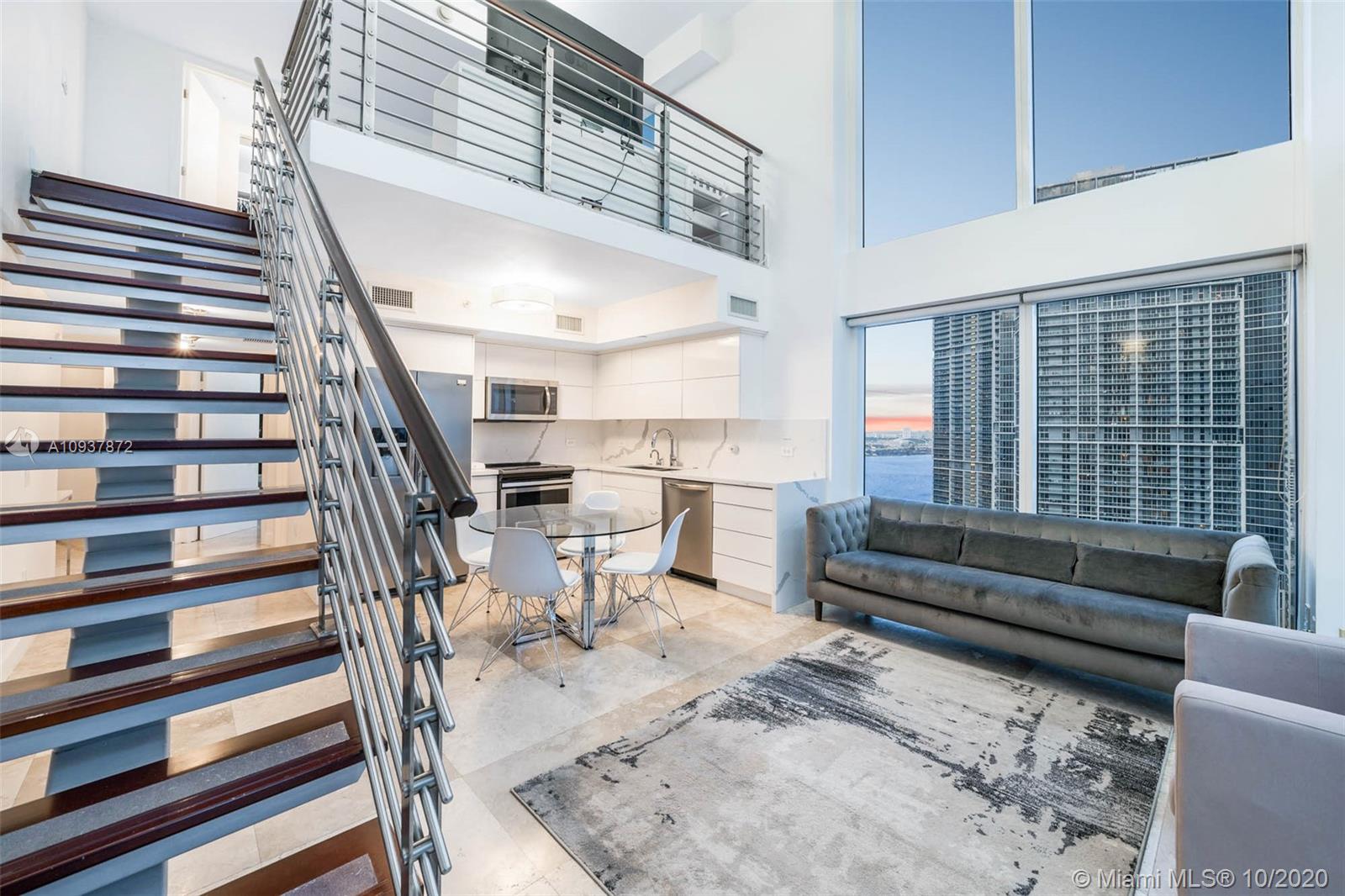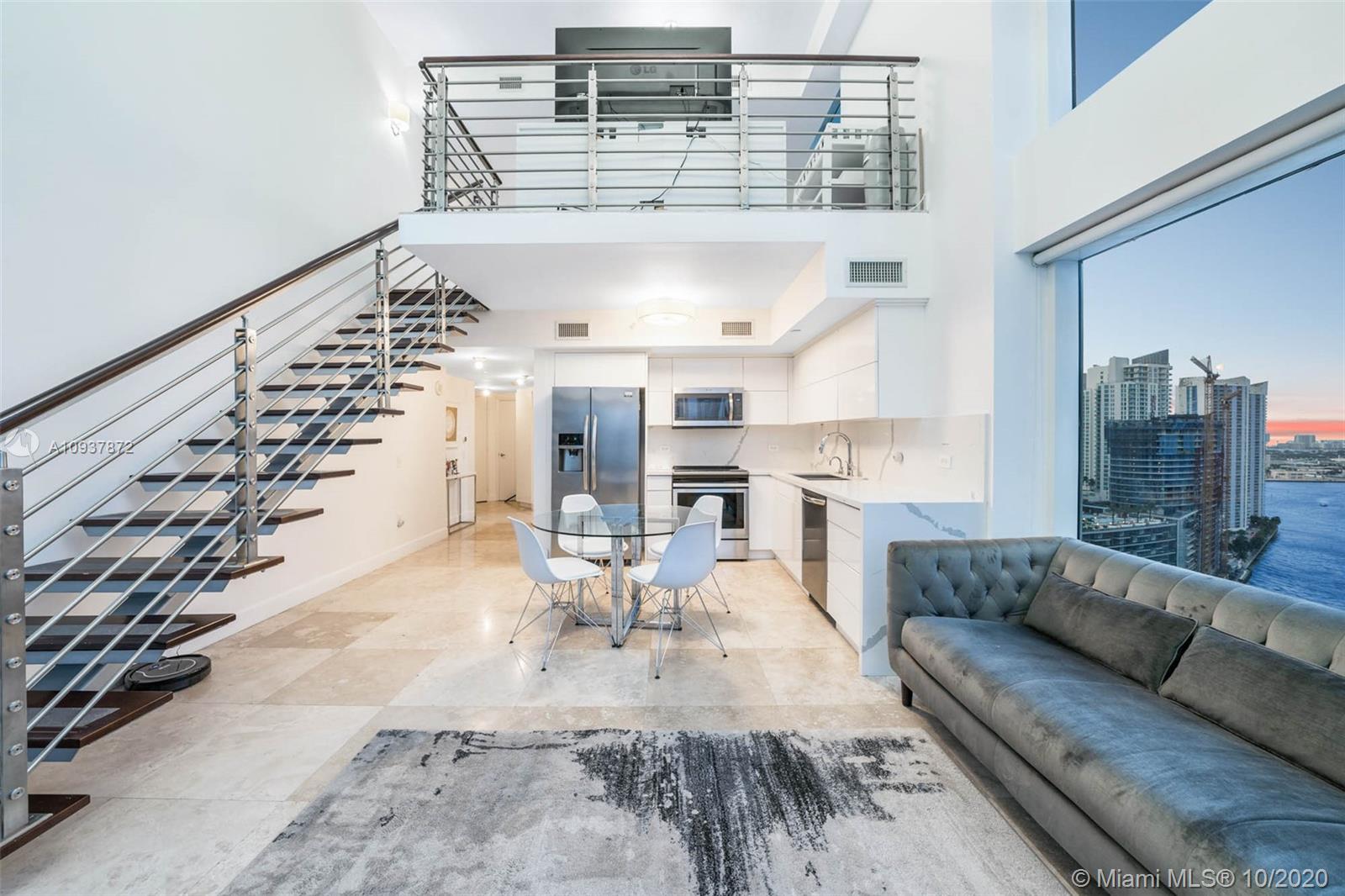 Live Limitlessly in a soaring 2/2 loft in Brickell on the River. This contemporary corner unit stands out from the rest because of the thoughtful upgrades the sellers made. A fully-renovated, all-white kitchen features a marble waterfall countertop & backsplash and plenty of sleek cabinets. Take the floating staircase up to the master suite to find the renovated master bathroom & custom built walk-in closet. Plus, the sellers built out the 2 downstairs closets and added an extra storage cabinet that blends seamlessly into the foyer. Let's talk about these views - double height ceilings make this unit 34 stories up, and with 2 balconies you'll never miss a second of the sunrise or sunset. Brickell on the River is centrally located, walking distance to Brickell City Centre & Downtown Miami.