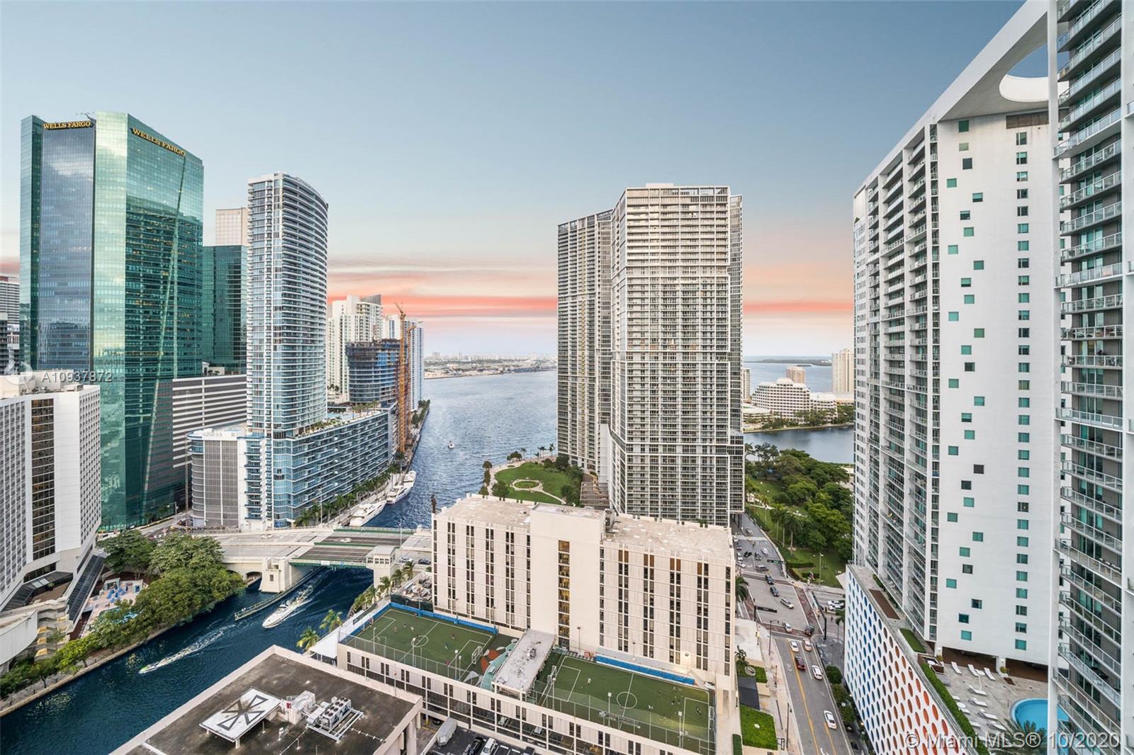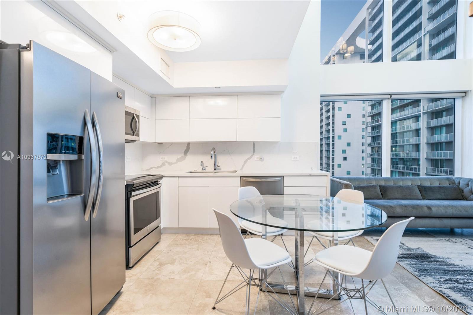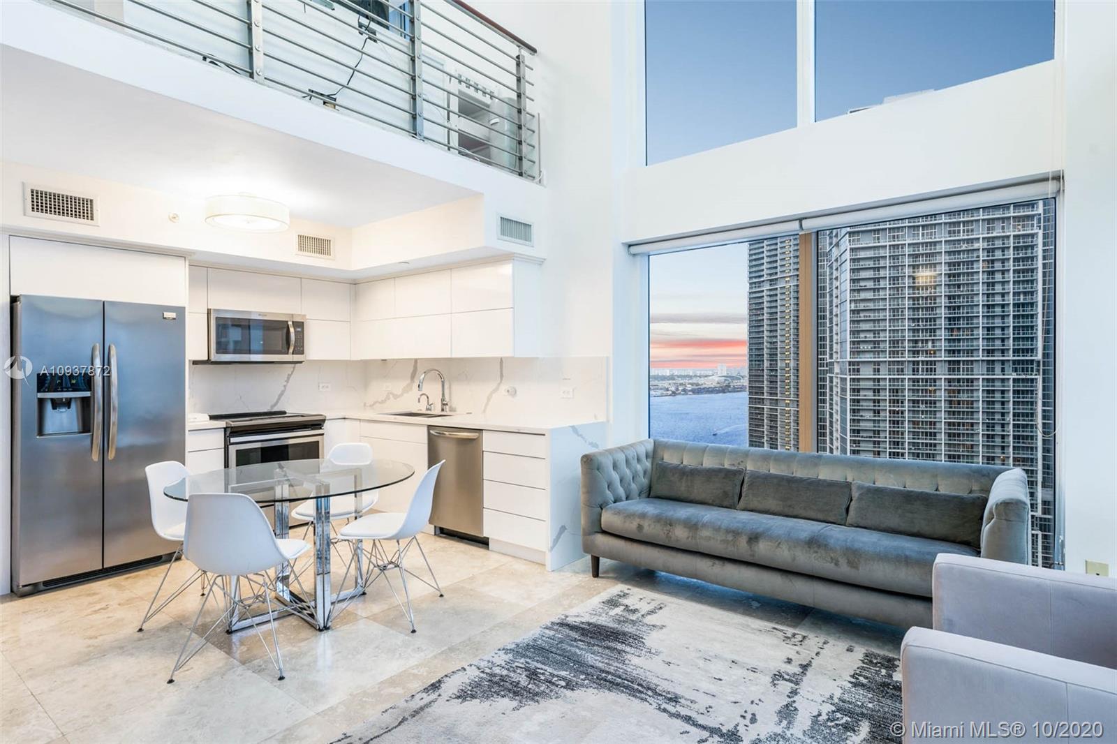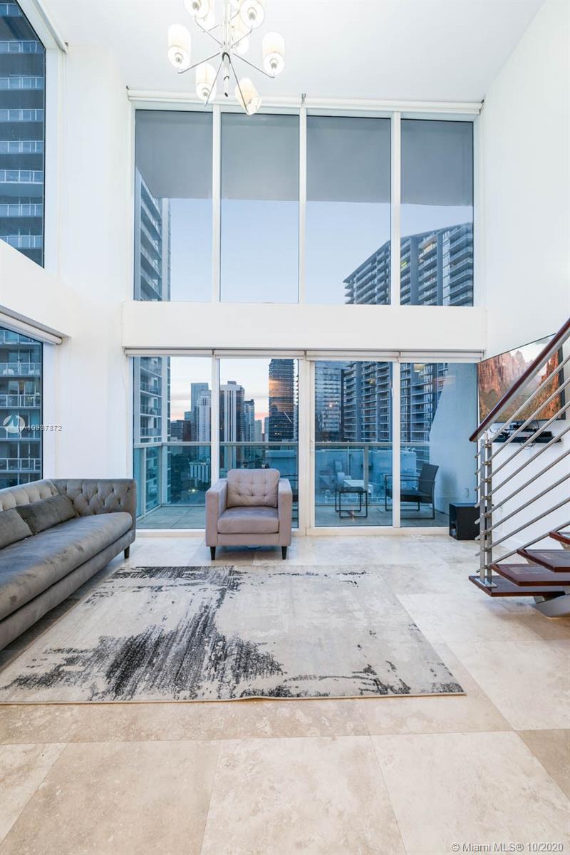 Live Limitlessly in a soaring 2/2 loft in Brickell on the River. This contemporary corner unit stands out from the rest because of the thoughtful upgrades the sellers made. A fully-renovated, all-white kitchen features a marble waterfall countertop & backsplash and plenty of sleek cabinets. Take the floating staircase up to the master suite to find the renovated master bathroom & custom built walk-in closet. Plus, the sellers built out the 2 downstairs closets and added an extra storage cabinet that blends seamlessly into the foyer. Let's talk about these views - double height ceilings make this unit 34 stories up, and with 2 balconies you'll never miss a second of the sunrise or sunset. Brickell on the River is centrally located, walking distance to Brickell City Centre & Downtown Miami.