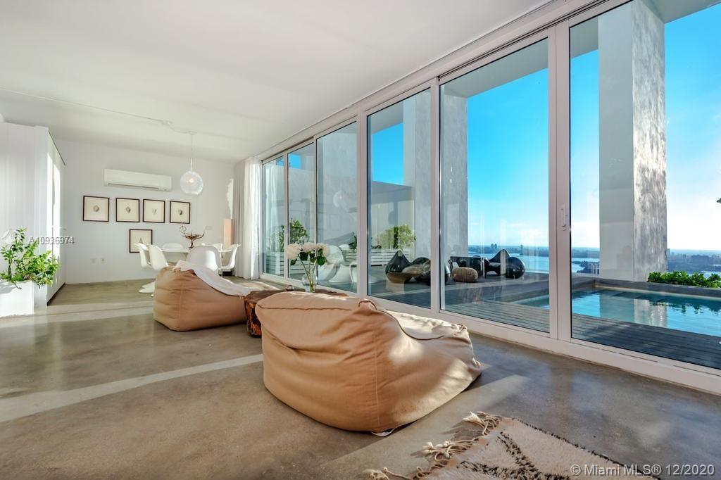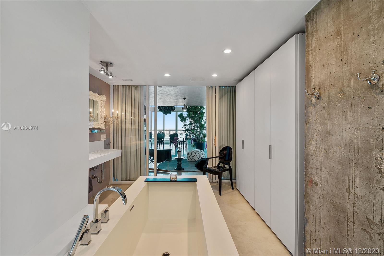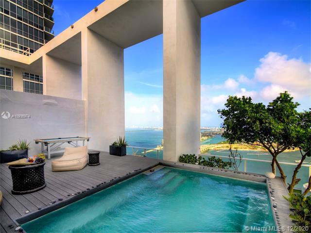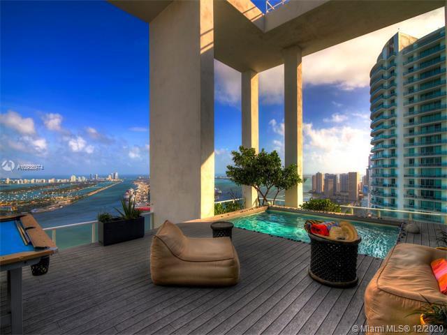 One of a kind 3-level Penthouse. Featuring 24- ft ceilings, private rooftop, plunge pool + 360° panoramic views of Miami skyline, Biscayne Bay, South Beach and Atlantic Ocean. This amazing unit of 5,247 sq.ft (as per owner, see floor plans) was designed by Oppenheim Architecture + Design with 5 bedroom/ 5.1 bathrooms, 2 master suites with private bathrooms, 2 TV rooms, 2 open kitchens, & 4 parking spaces . Enjoy resort style amenities with a 24 hour concierge, valet parking, fitness center and spa. Walking distance to Adrienne Arsht Center, museums & restaurants. Definitely one of the best penthouses in all Miami!