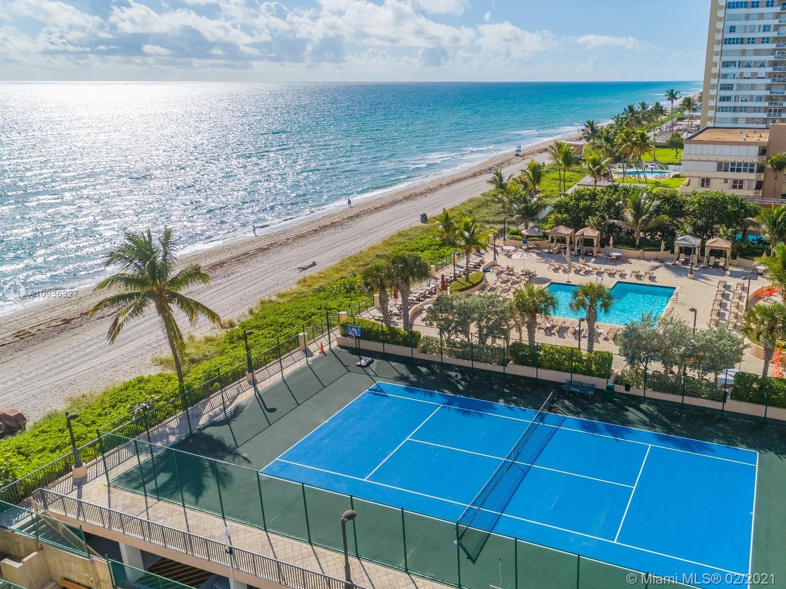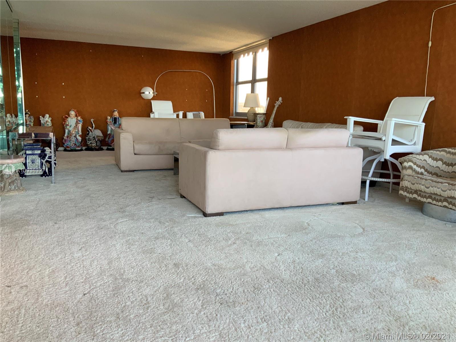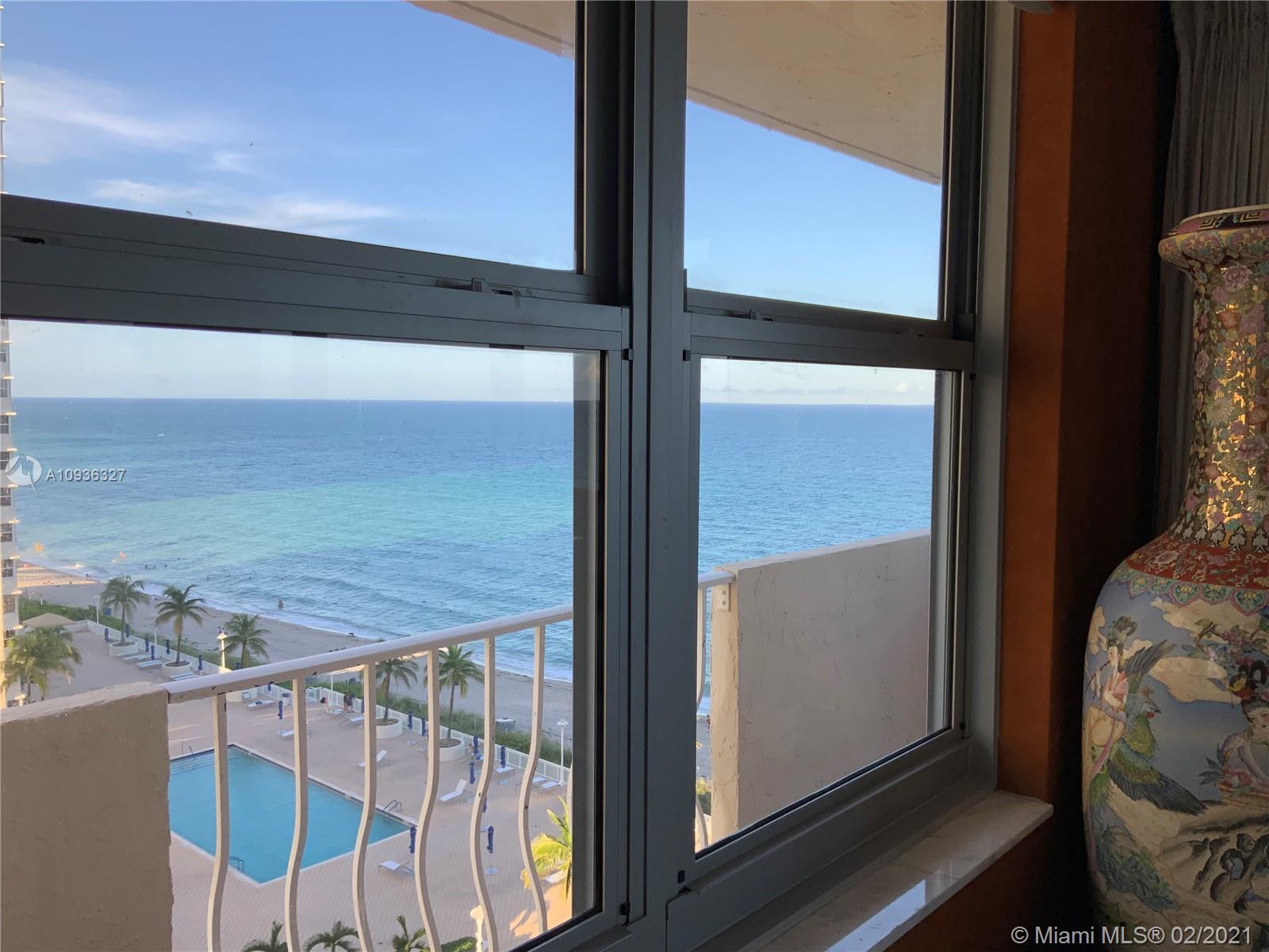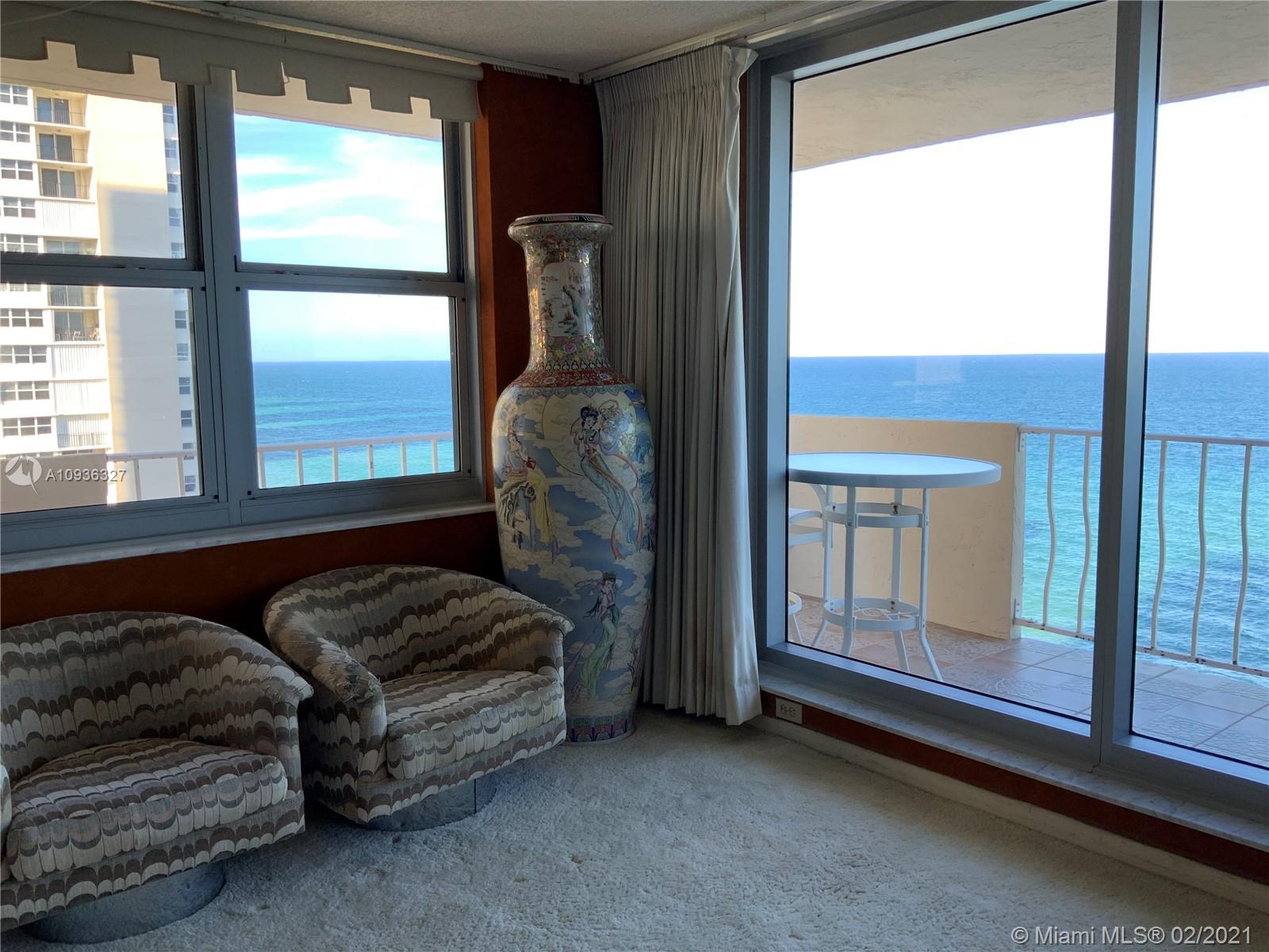 Amazing Direct Ocean views. Large 2 bed room and 2 full bathrooms apartment. North East Corner unit almost 2,000 sq ft. Ocean views from all rooms. Only 4 Apartments per floor. Each bed room has 2 walking closets. Laundry machines inside apartment. Huge corner wrap around balcony. New High Impact Hurricane windows. Amenities include: cable TV and HBO, Beach service, Large Heated swimming pool with Jacuzzi and Cabanas, BBQ Grills, GYM, Tennis court, Party room with kitchen, 24 hours Security, Reception and Complementary Valet Services. Walking distance to stores. Apartment needs complete Remodeling and has lots of potentials for Interior Design. With open kitchen remodeling would have Direct Ocean view. Covered parking. Apartment is vacant and easy to show ask Listing Agent for showing.