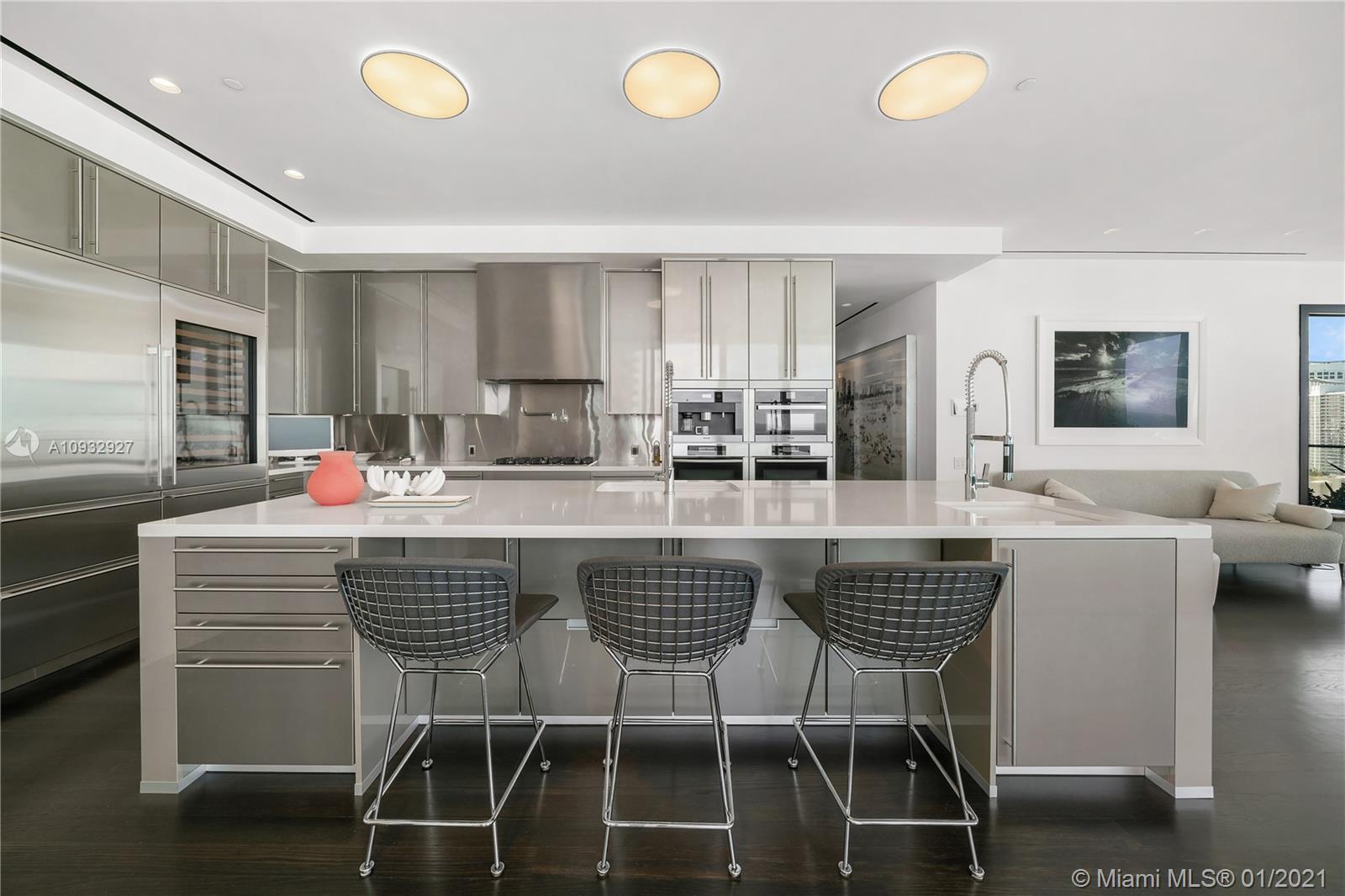 Step into your private foyer and enter this spectacular home in the sky. Boasting unparalleled style, design and views. No detail was spared in the complete renovation by world-renowned B5 Studio. Floor to ceiling windows & open floorplan complement sweeping ocean views. Bleached cerused oak walls accent the media room. Gallery walls w/ custom lighting to display art. Oak floors w/ mahogany stain throughout. Elegant primary bathroom w/ Mother of Pearl and Caesarstone floors & countertops. Feel the ocean breeze on wraparound terraces facing North, South & East, feat. Ipe floors & aerial gardens designed by landscape architect Reed Hilderbrand. Private two-car, air-conditioned garage. Apogee offers the ultimate level of prestige, privacy, security & concierge services in the heart of SOFI.