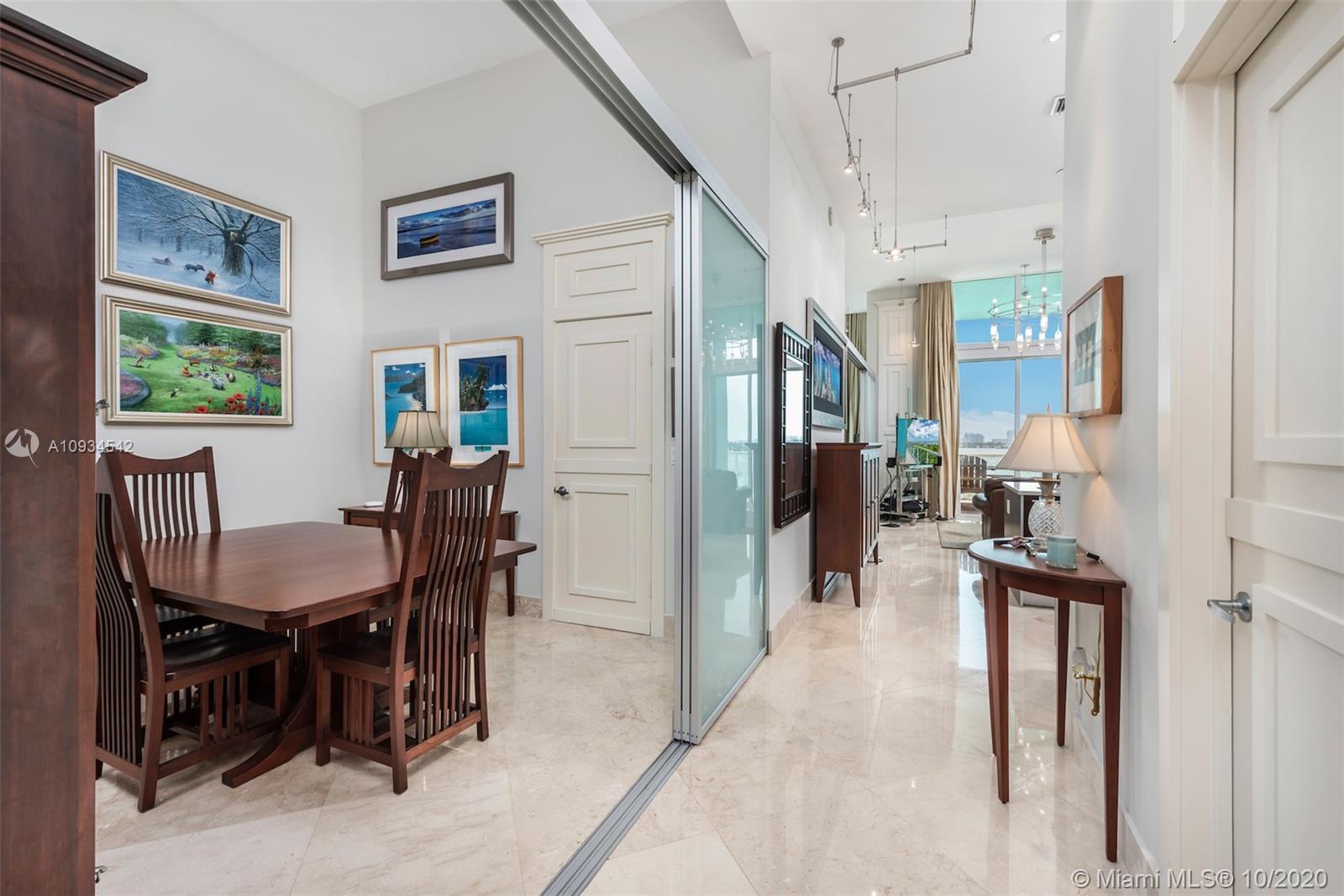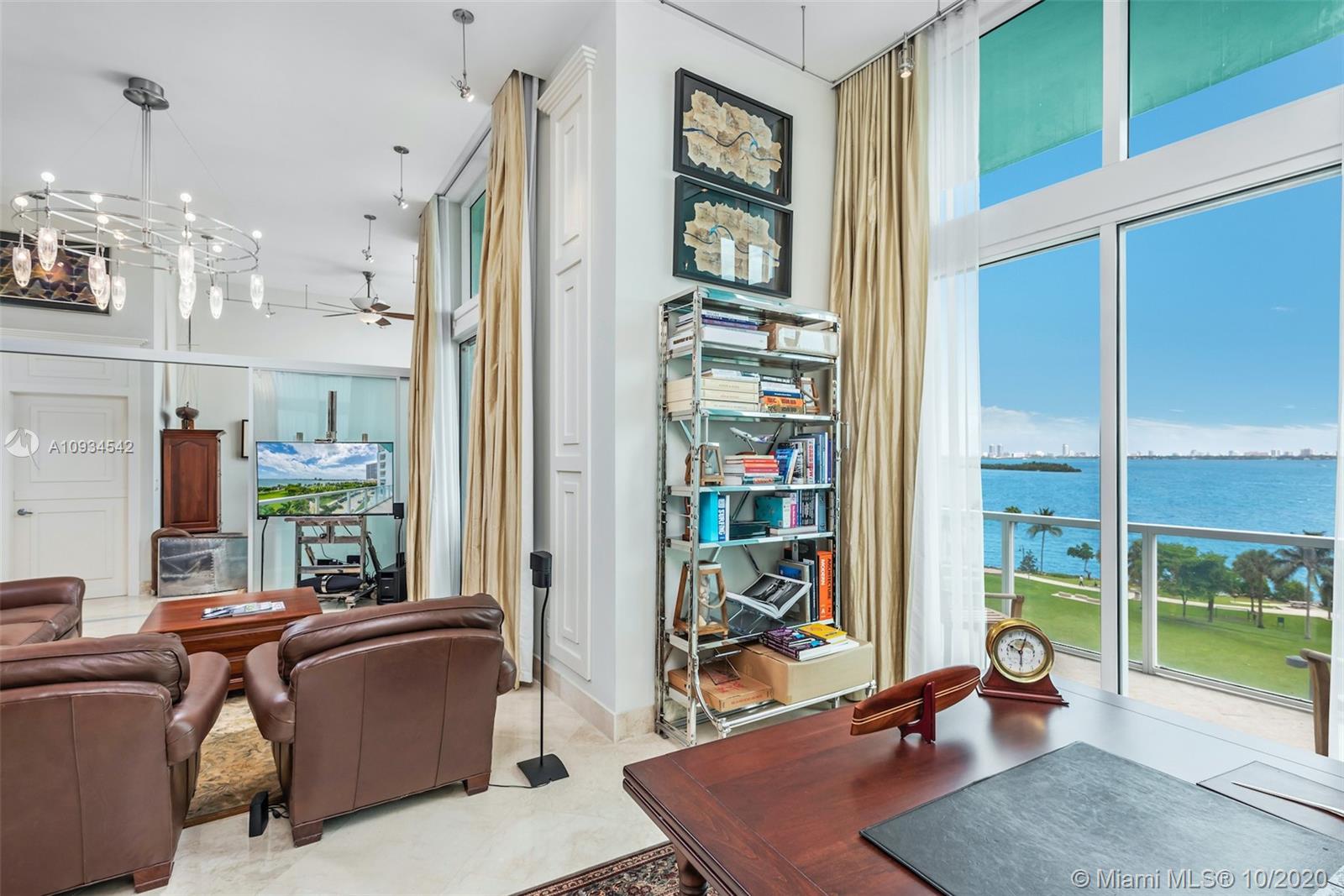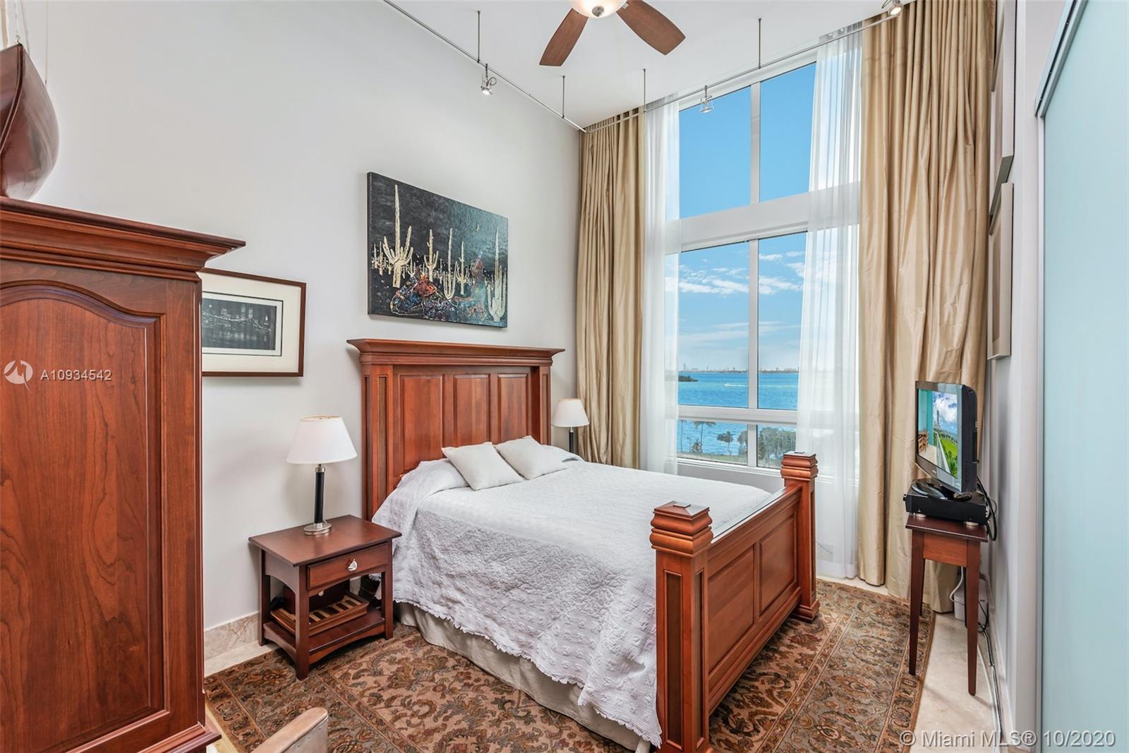 Enjoy unobstructed sunrises, shimmering bay views & watch the cruise ships go by from this coveted Loft style residence at Quantum on the Bay. Overlooking Margaret Pace Park & Biscayne Bay, this spacious 2bd + Den, 1,377SF open concept light & bright residence features incredible soaring 13ft ceilings, oversized impact windows / doors, 24in marble tiles & spectacular high end lighting throughout. Stunning state-of-the-art chef’s kitchen with Miele dishwasher, custom eat-in island, teal glass backsplash & pristine quartz countertops. Unit comes with 2 parking spaces (same floor, semi isolated avoiding car “dings”). Plenty of wall space to display your art collection. In unit washer / dryer. Enjoy the best Miami has to offer. Walk to restaurants, Publix, museums, parks & more!